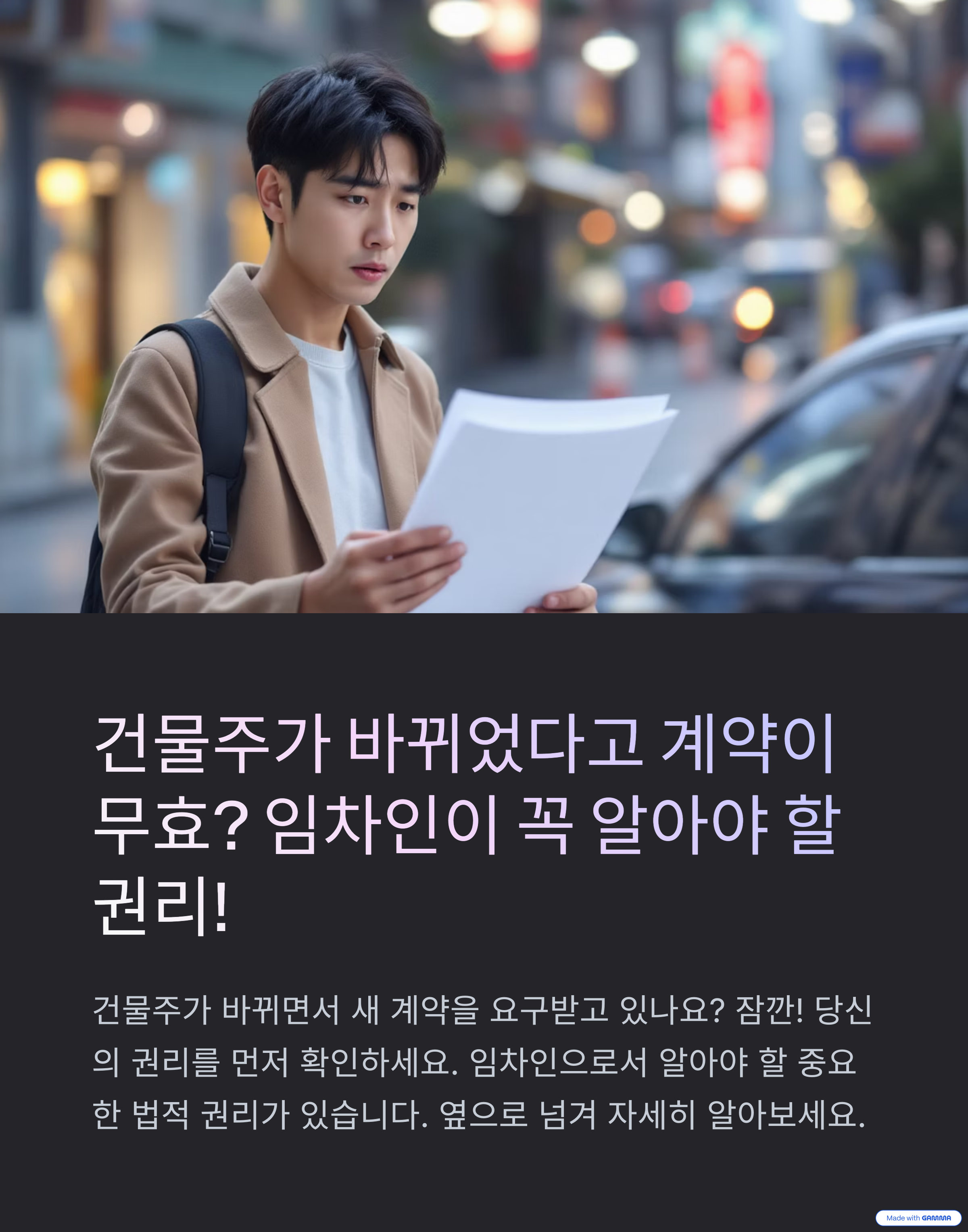 새로운 건물주가 나타나면서, 기존 계약은 무효이고 새 계약서를 작성하자고 요구합니다.