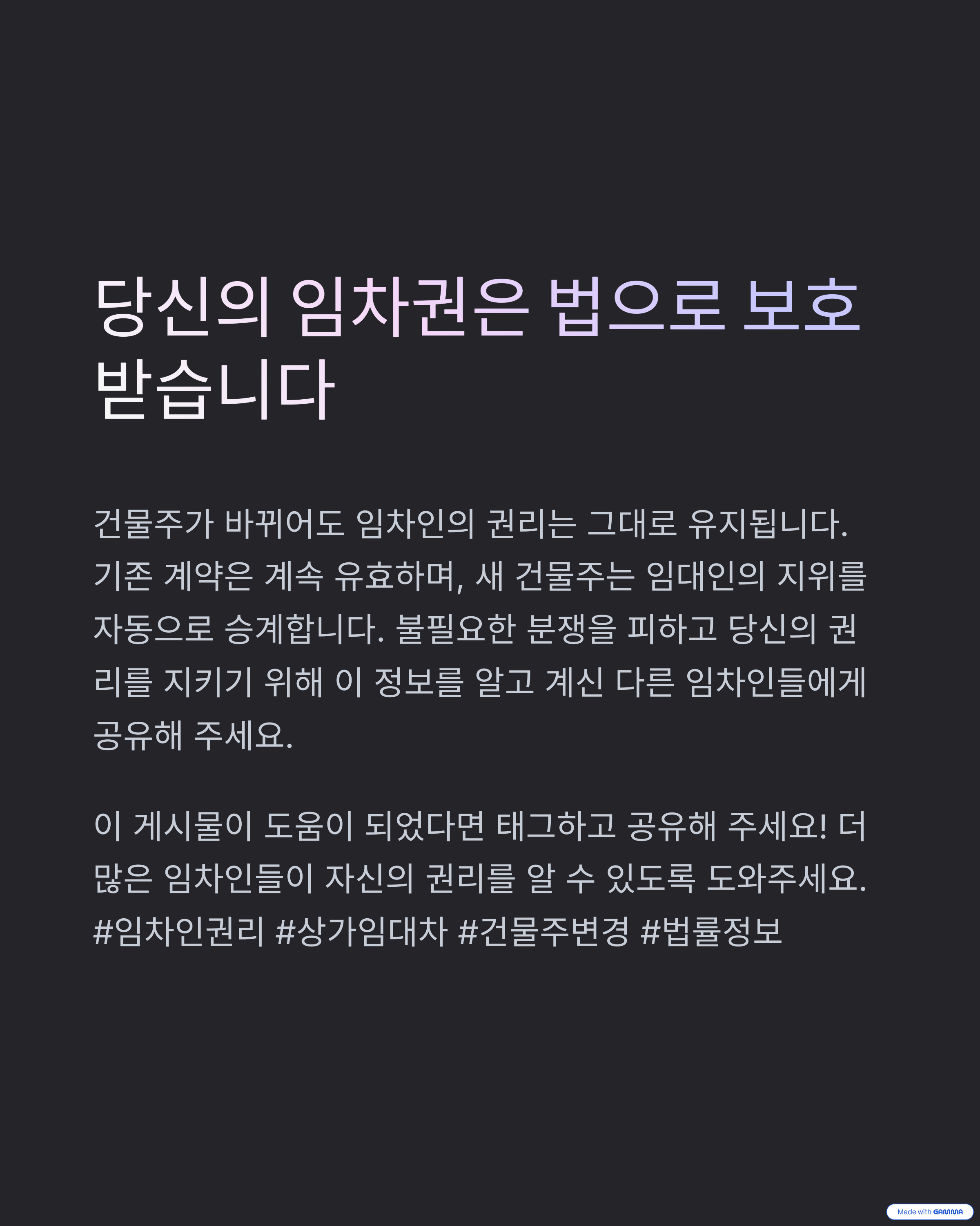 1. 기존 임대차계약은 새 건물주에게도 유효합니다