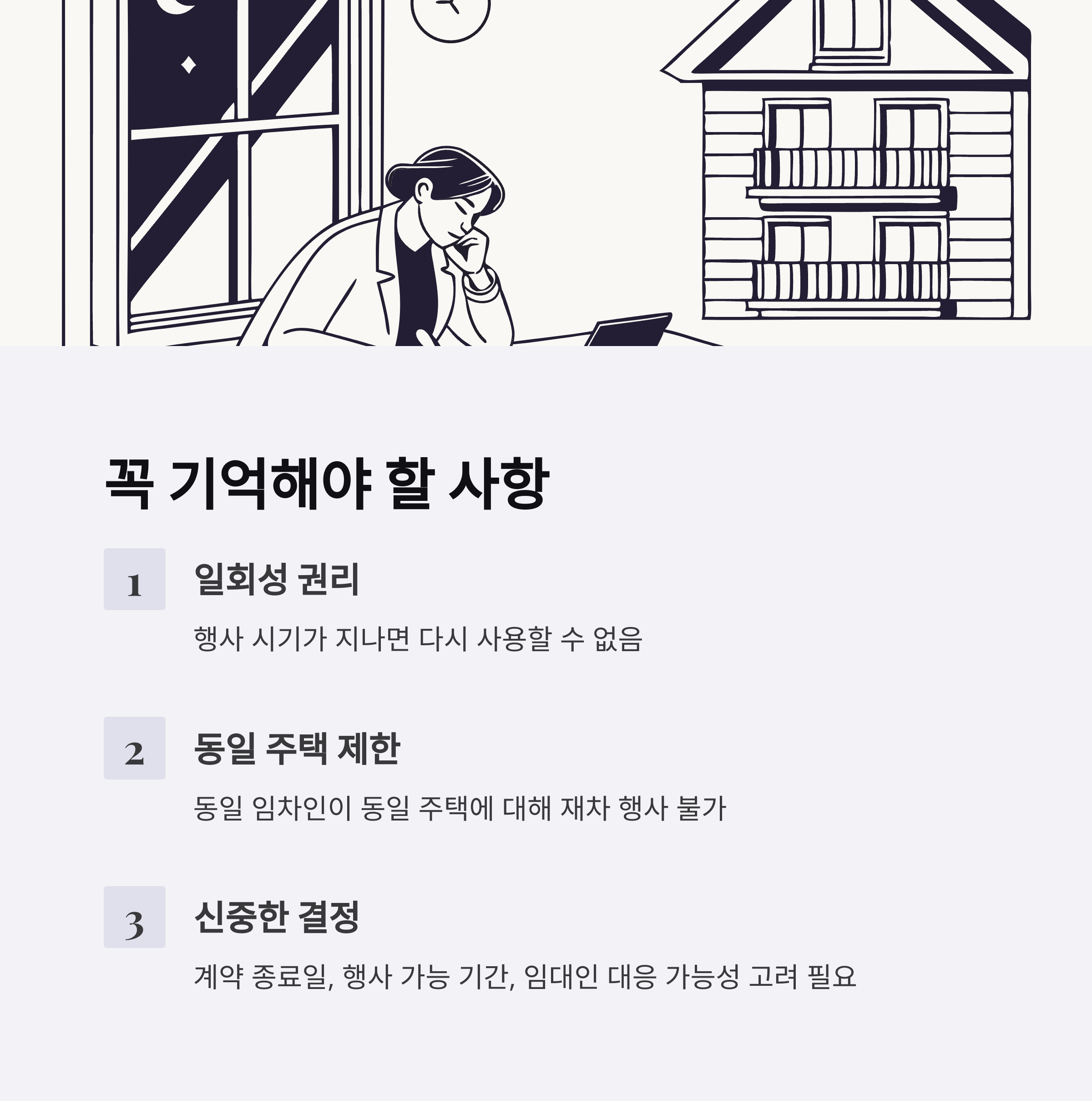 따라서 임차인은 계약 종료일, 행사 가능 기간, 임대인의 대응 가능성 등을 종합적으로 고려해,
