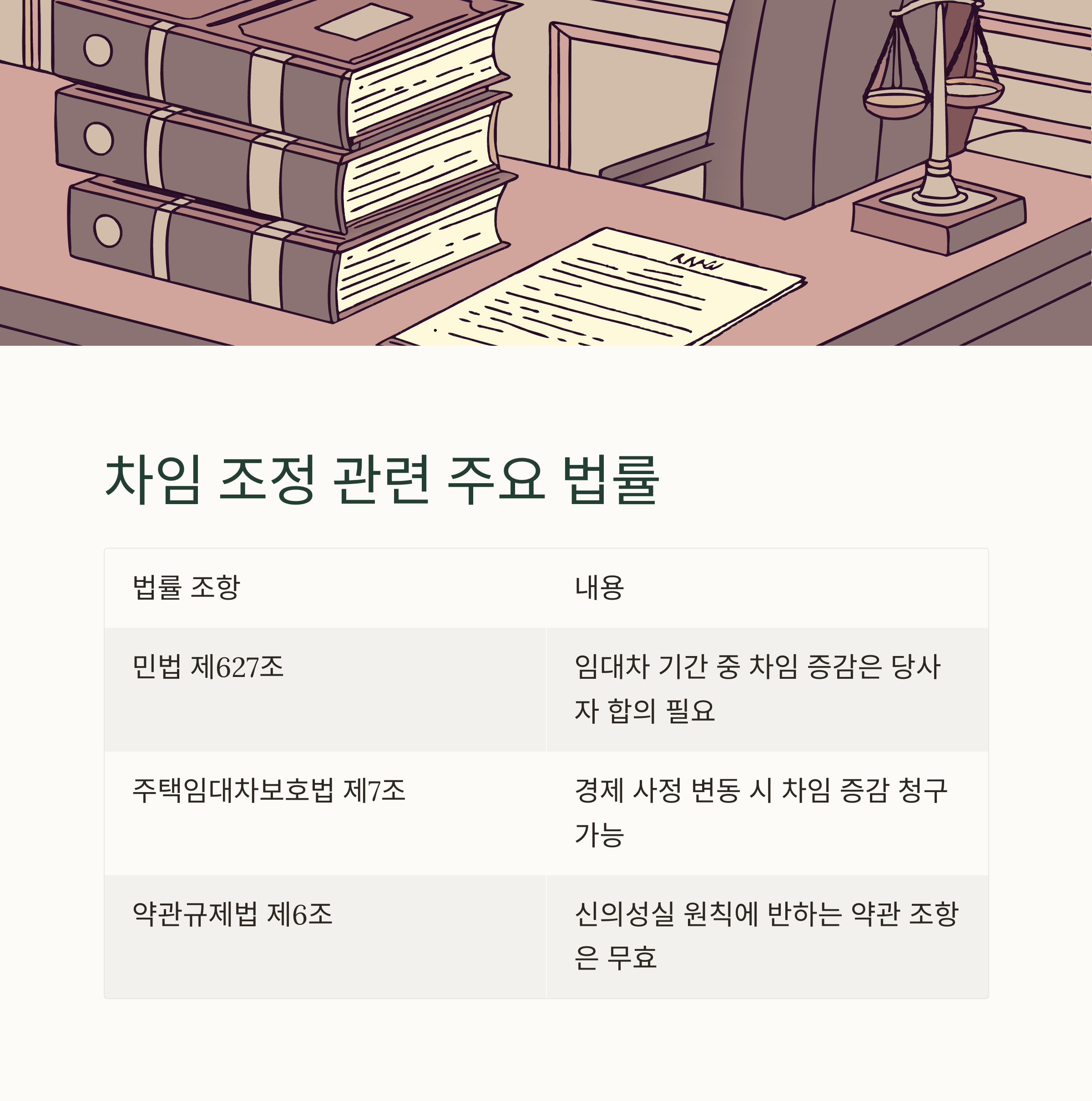 | 민법 제627조 | 임대차 기간 중 차임의 증감은 당사자의 합의에 따라야 함 |