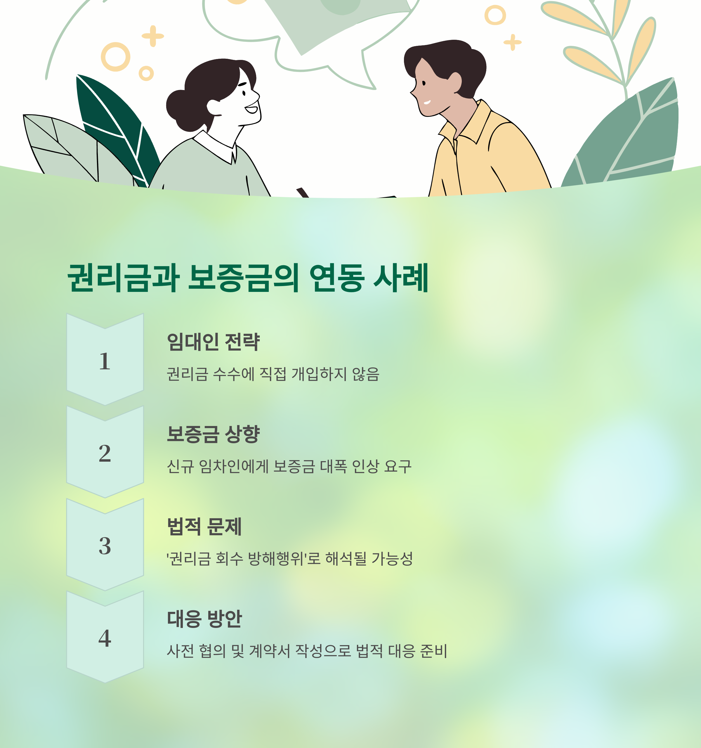 신규 임차인에게 보증금을 기존보다 대폭 상향 요구함으로써 사실상 권리금 효과를 누리려는 경우도 존재합니다.