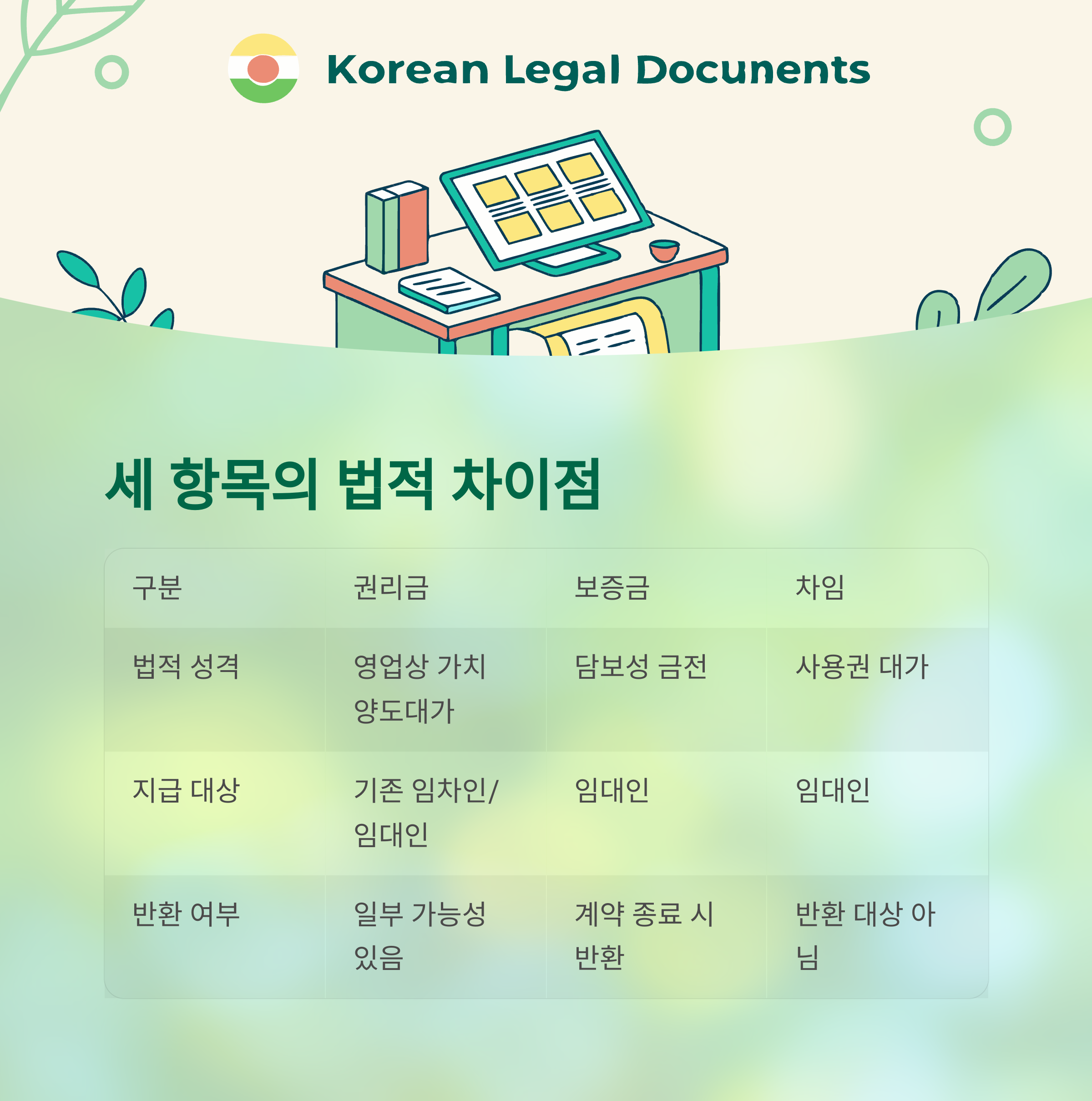 권리금·보증금·차임의 차이점 비교 표