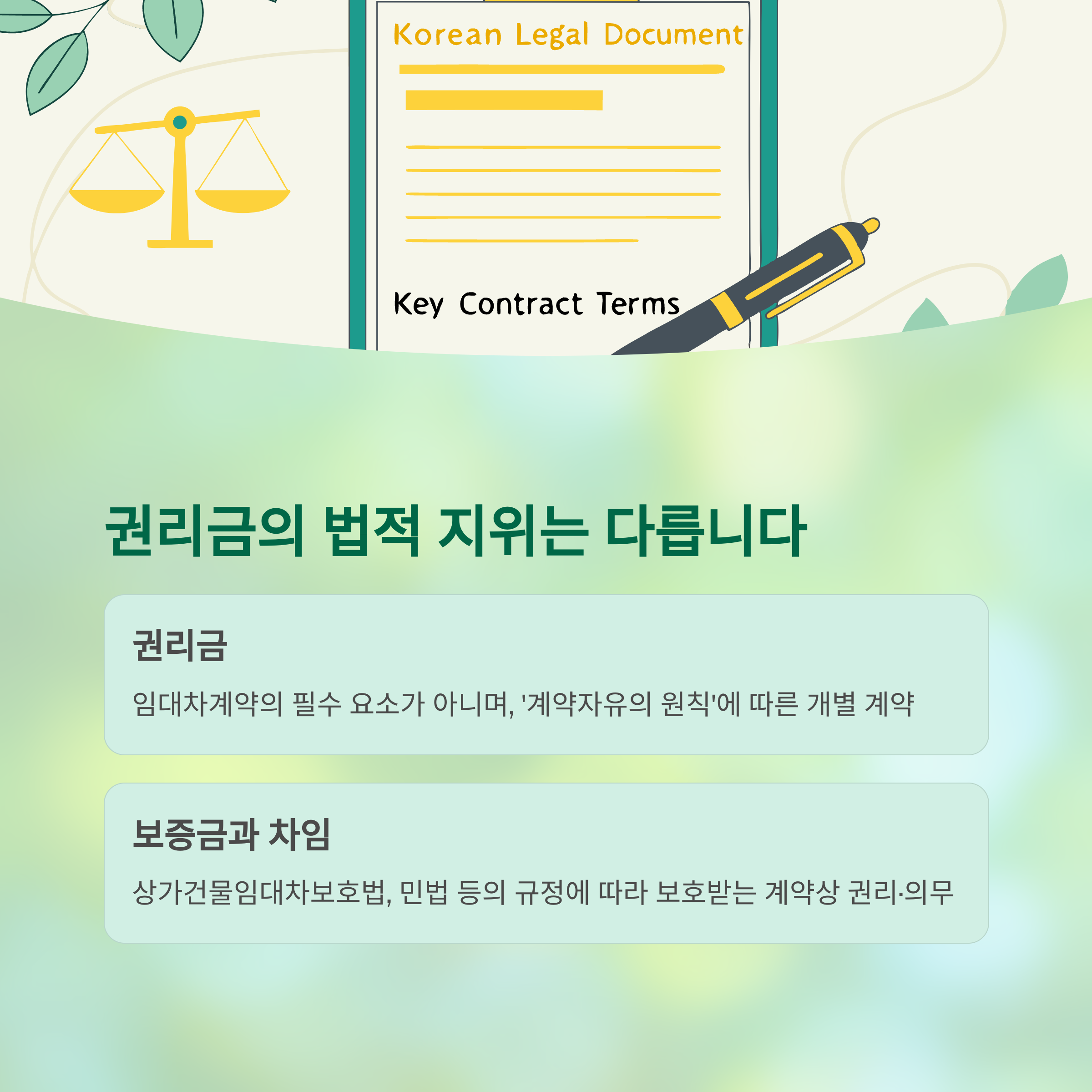 이처럼 권리금은 별도 계약서와 임대인의 인지 여부에 따라 법적 효과가 달라집니다.