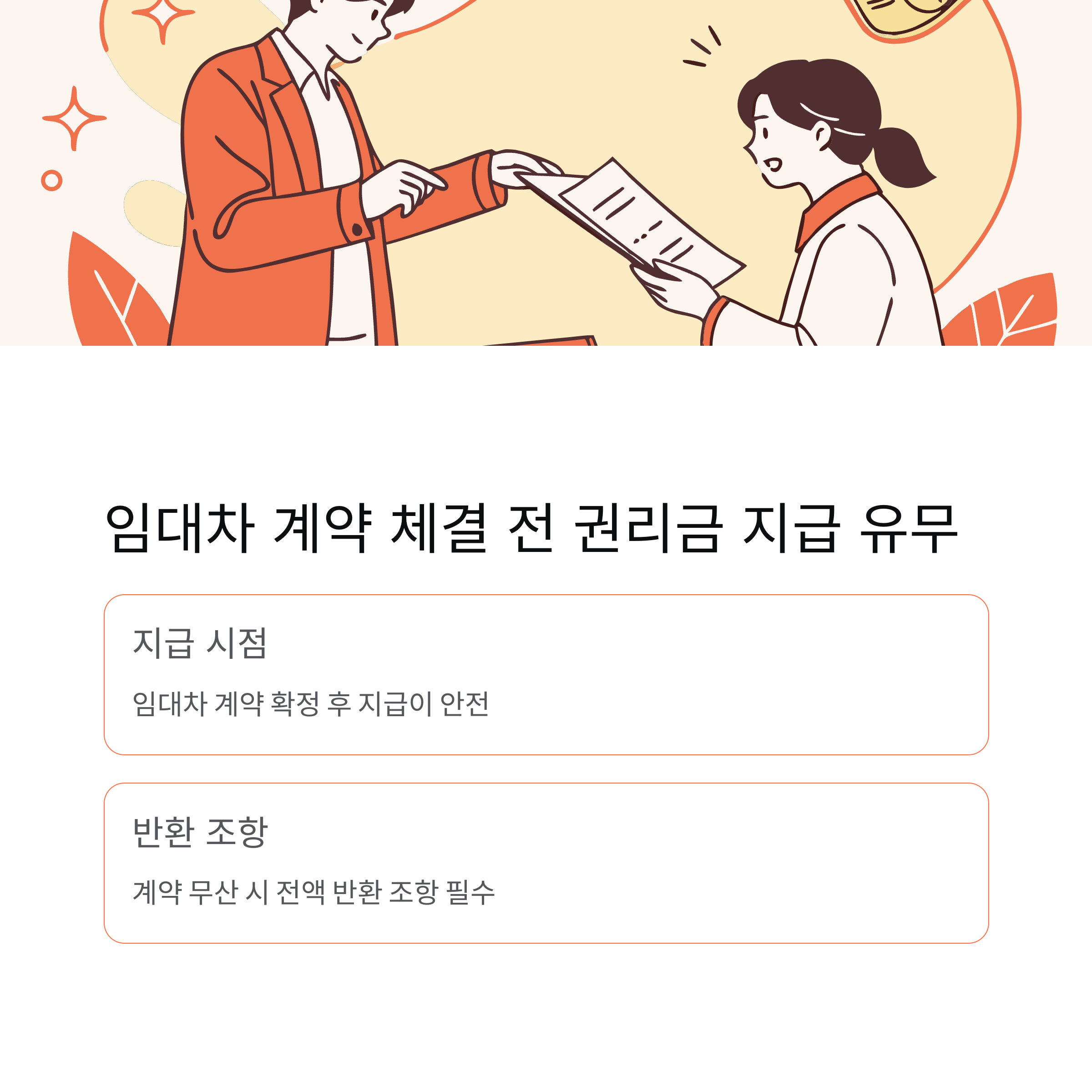 그 전에 지급된 금액은 ‘계약 무산 시 전액 반환’ 조항을 반드시 포함해야 합니다.