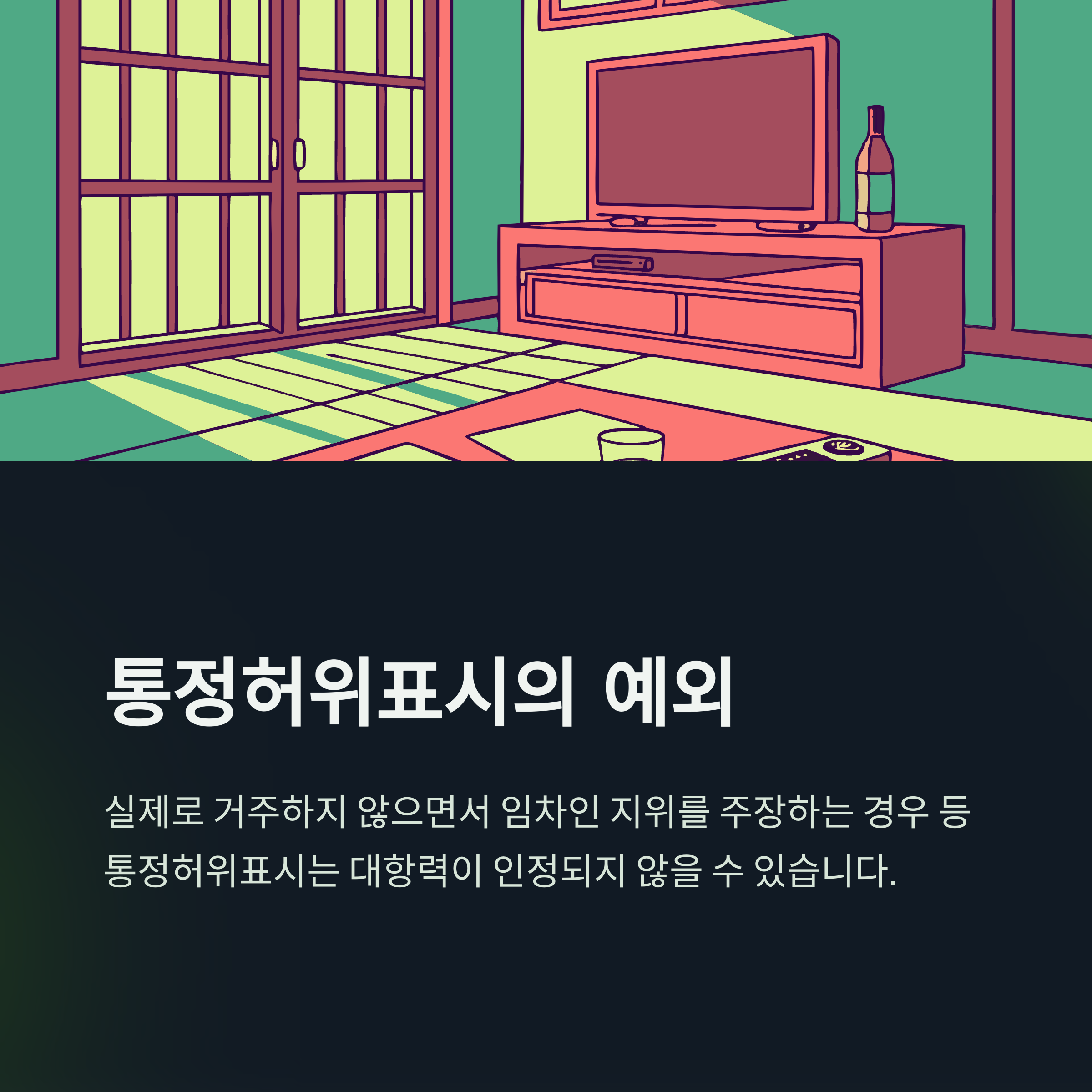 임대차계약이 통정허위표시에 해당하는 경우에는 대항력이 인정되지 않을 수 있습니다. 예를 들어, 실제로 거주하지 않으면서 임차인으로서의 지위를 주장하는 경우 등이 이에 해당합니다.