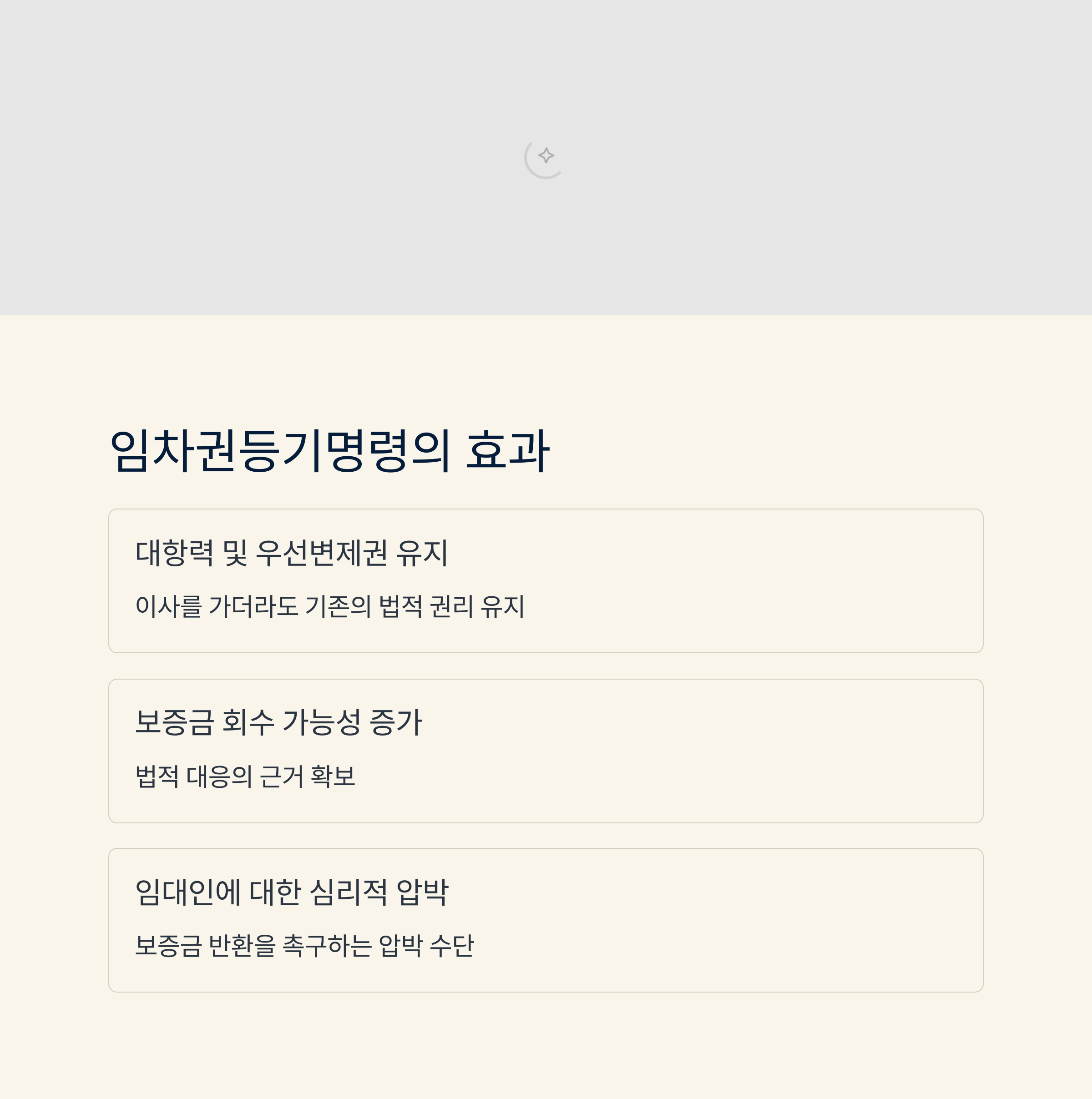 - 임대인에 대한 심리적 압박: 임차권등기명령은 임대인에게 보증금 반환을 촉구하는 압박 수단이 될 수 있습니다.