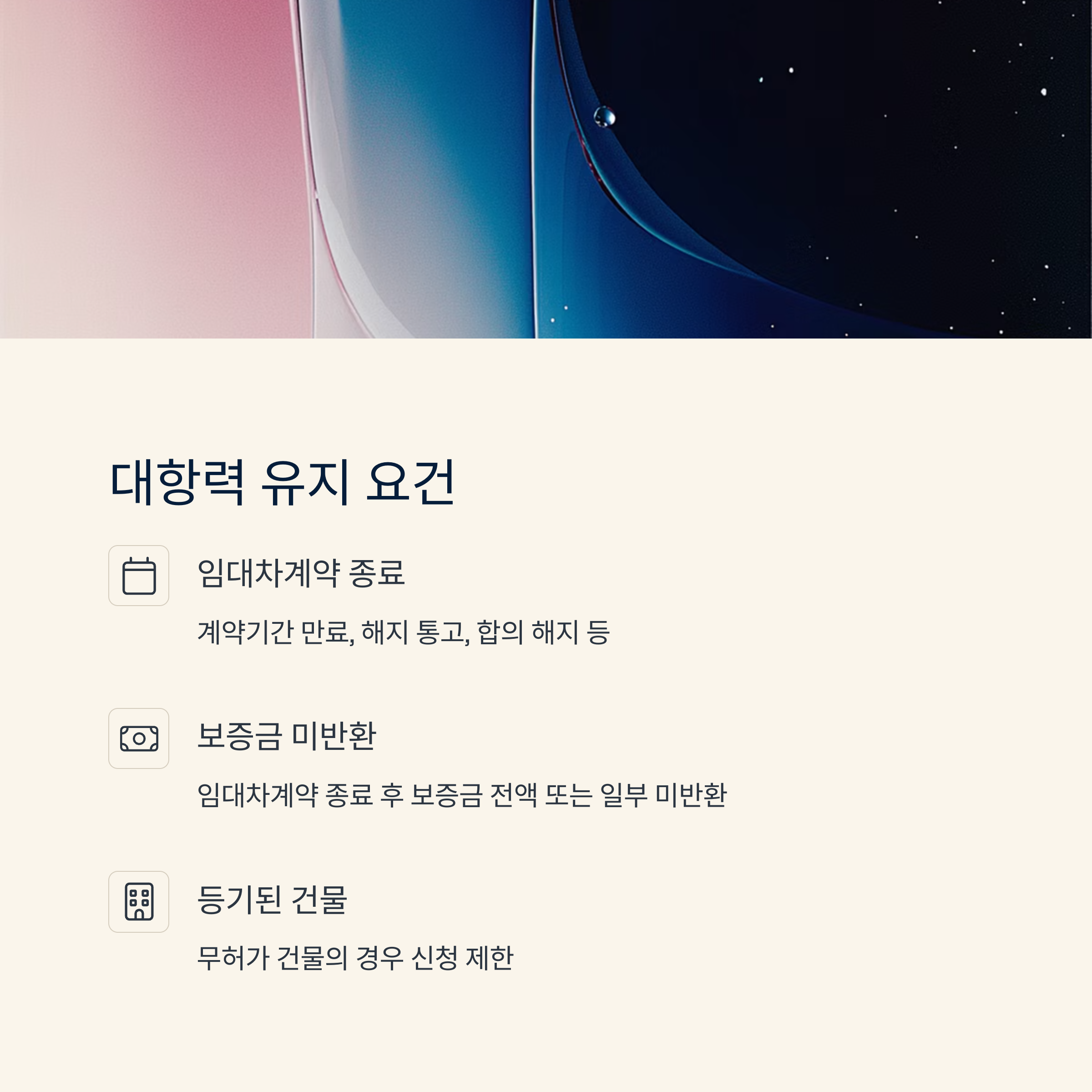 - 임대차계약 종료: 계약기간 만료, 해지 통고, 합의 해지 등으로 임대차계약이 종료되어야 합니다.