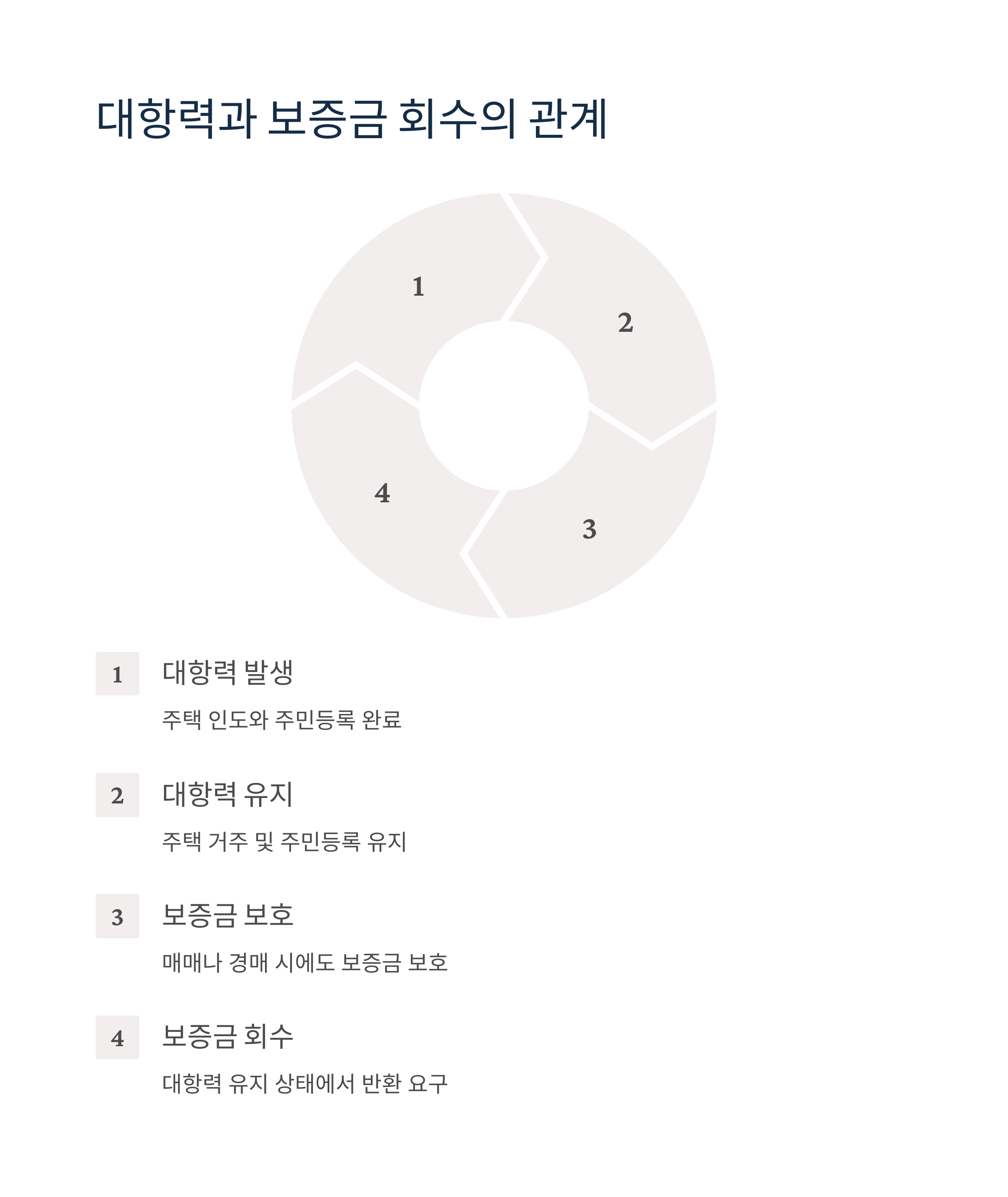 임대차 계약이 종료된 이후에도 보증금을 반환받지 못했다면, 임차인이 주택에 계속 거주하면서 대항력을 유지하는 것이 유리합니다. 퇴거하게 되면 대항력이 상실되며, 제3자에게 보증금을 주장할 수 없게 됩니다. 보증금 회수를 위해서는 대항력 유지를 고려한 대응이 필수입니다.