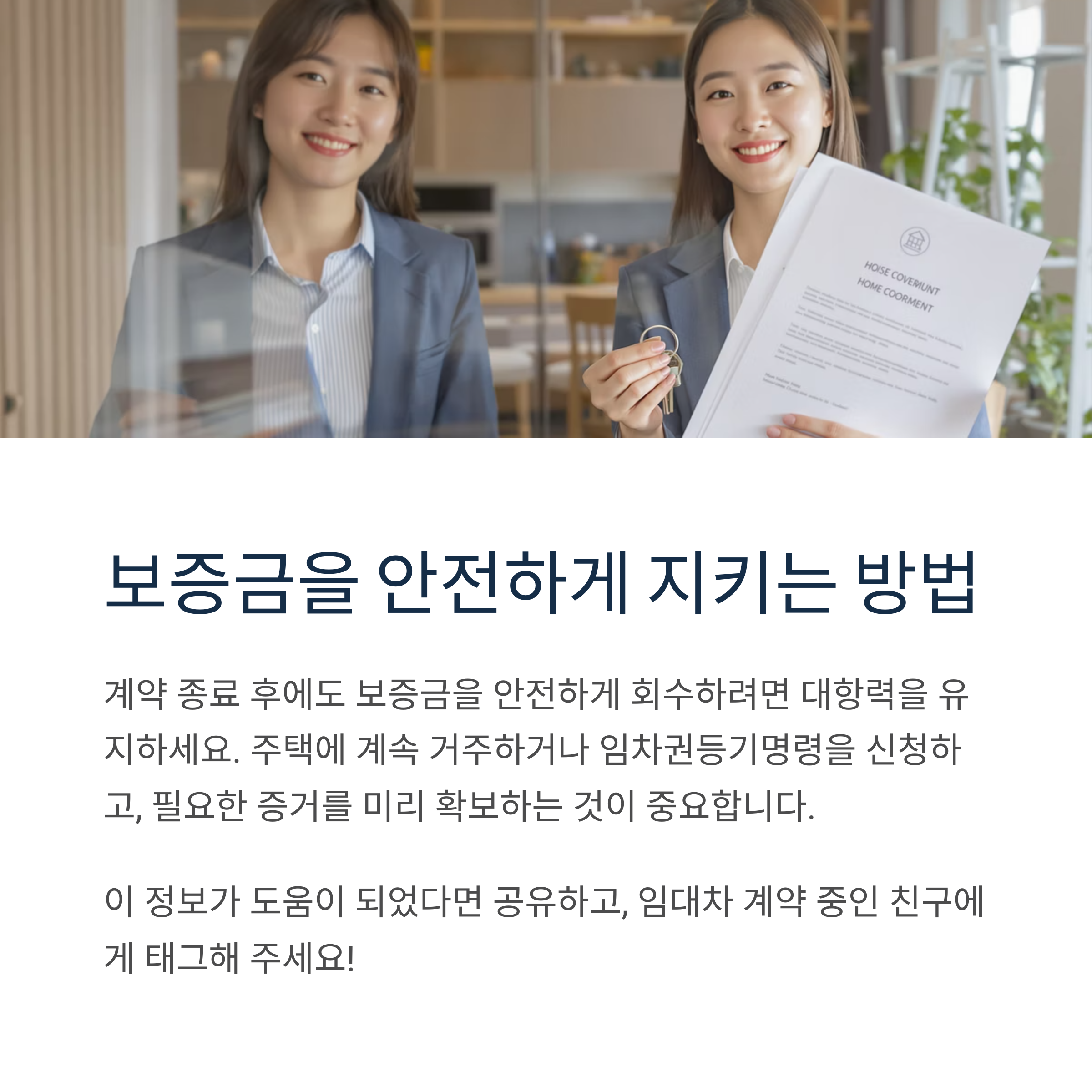 임차인은 계약 종료 후에도 보증금을 안전하게 회수하기 위해 다음과 같은 조치를 고려해야 합니다: