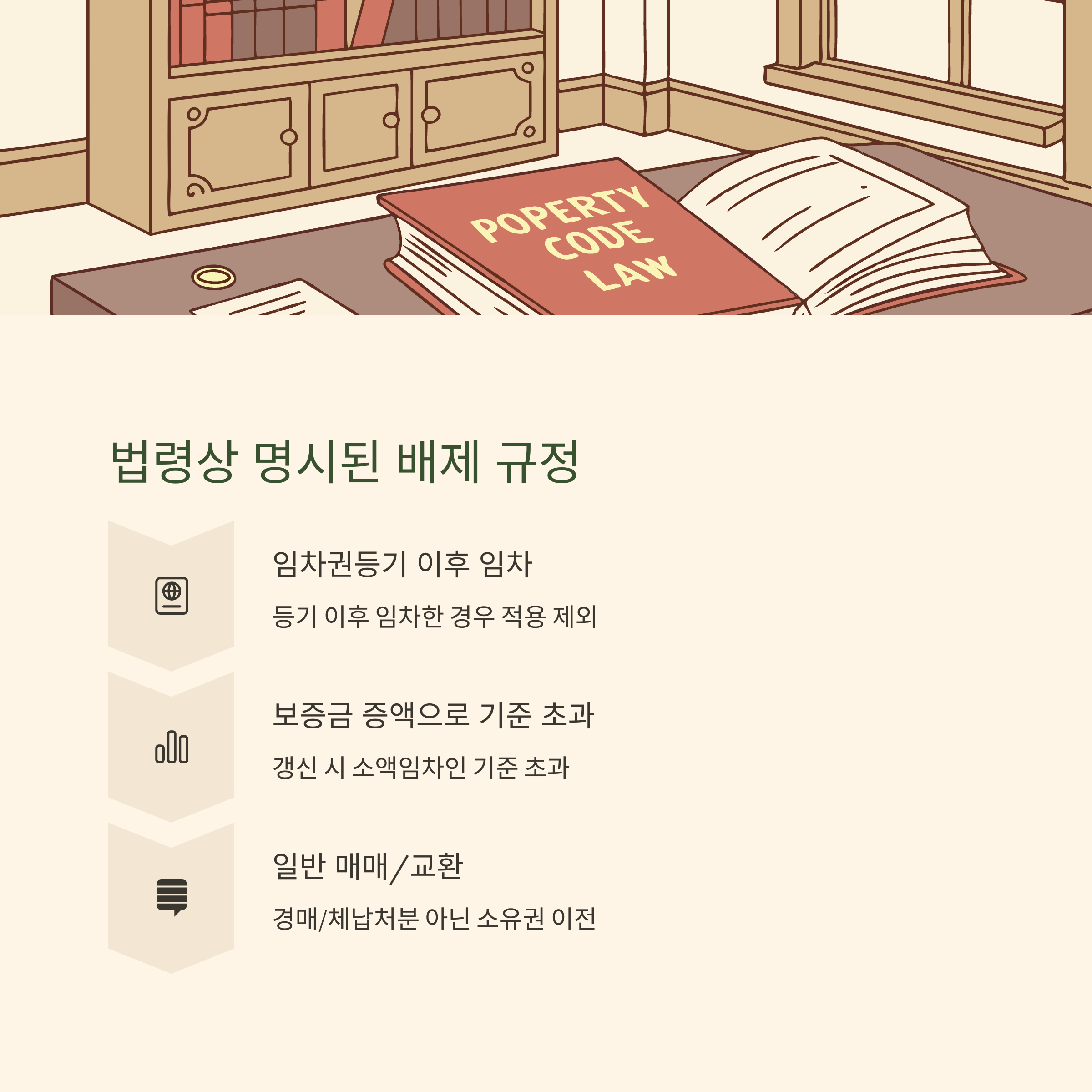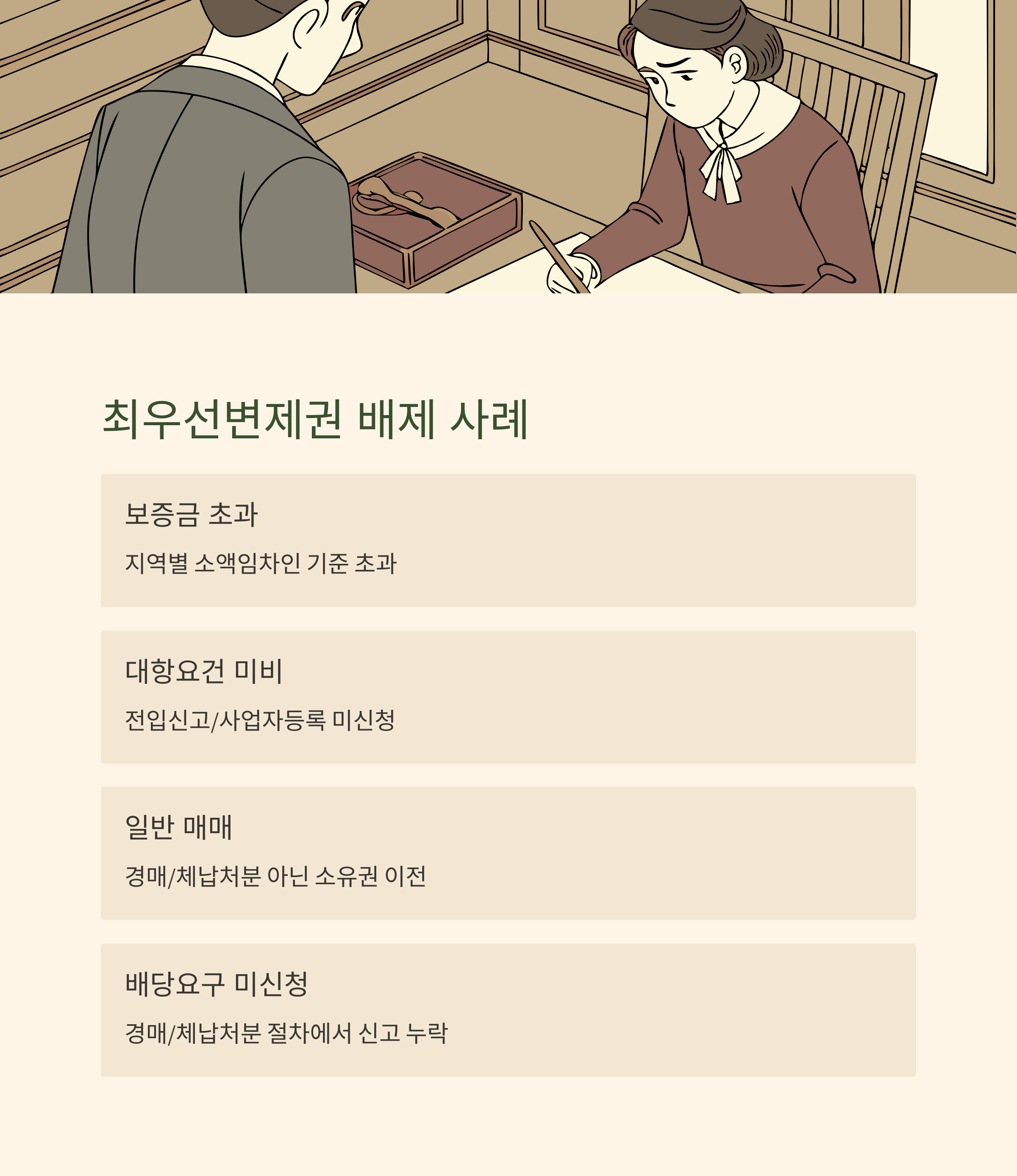 - 보증금 초과: 지역별 소액임차인 기준을 초과하는 보증금의 경우