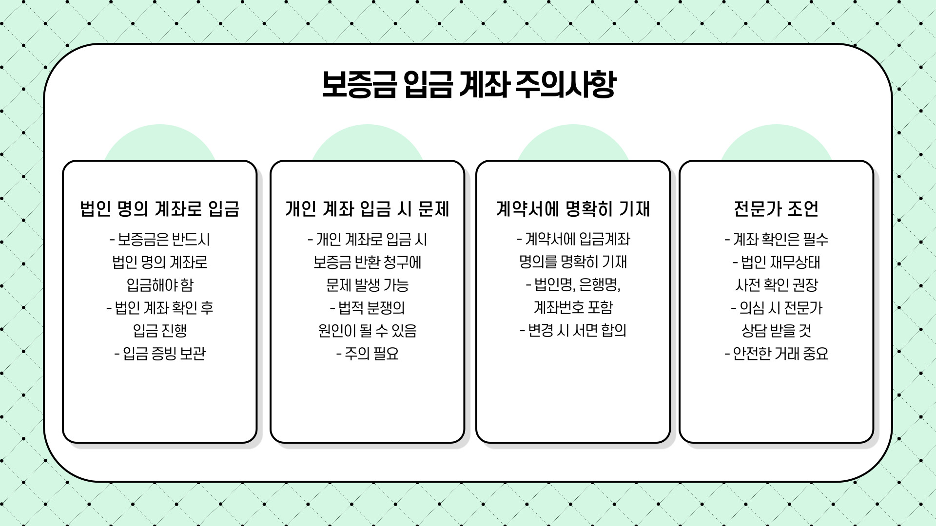 - 계약서에도 입금계좌 명의를 명확히 기재하는 것이 안전합니다.