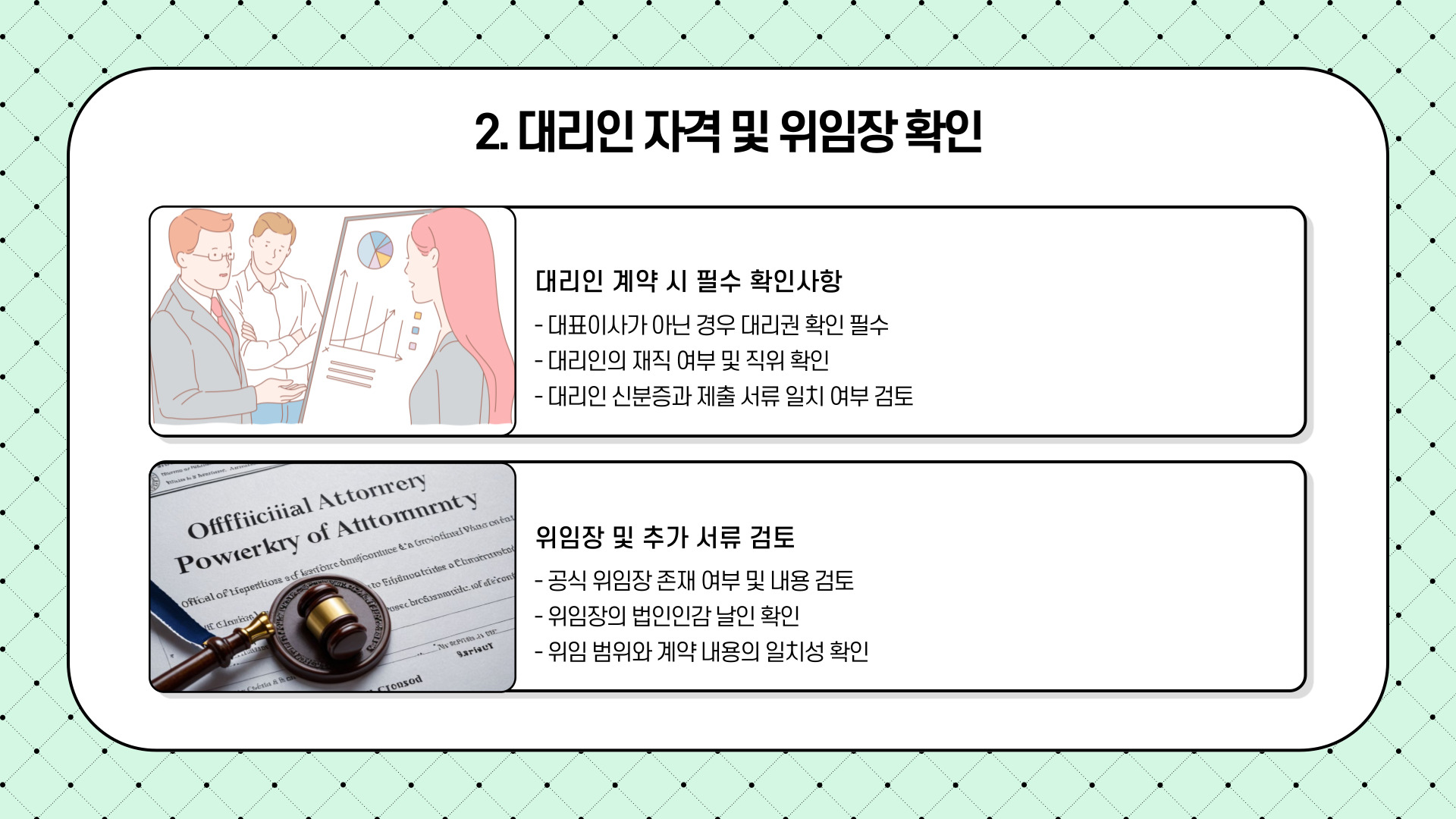 2. 대리인 자격 및 위임장 확인