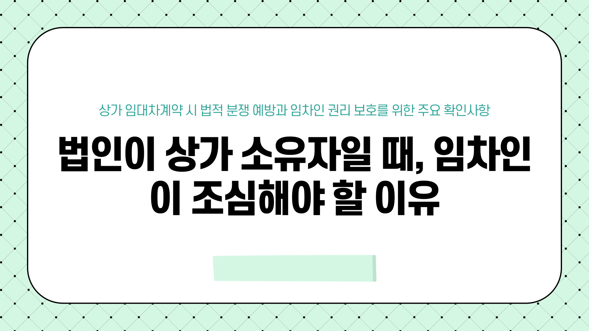 법인이 상가 소유자일 때, 임차인이 조심해야 할 이유