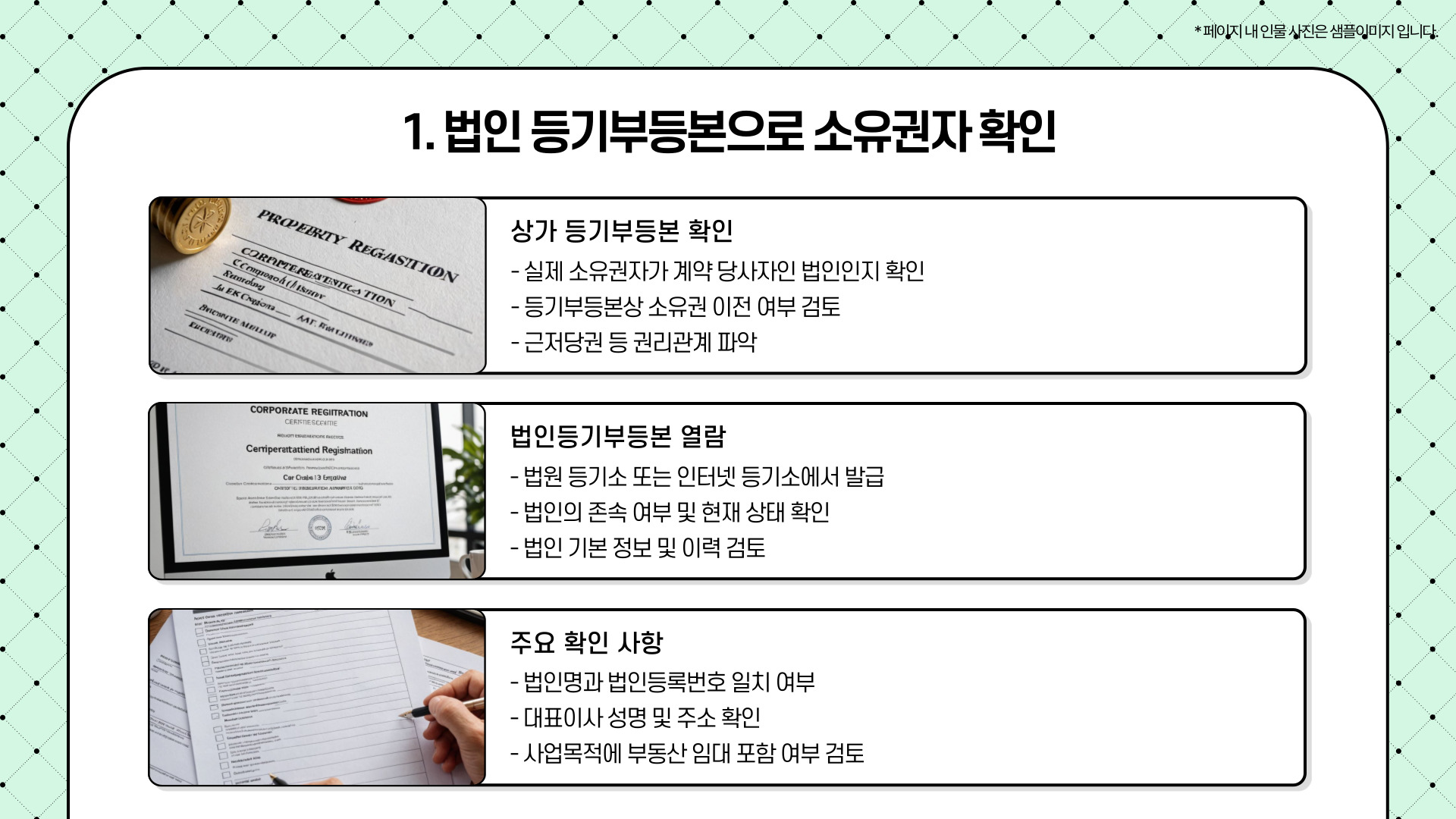 그렇다면 법인이 소유한 상가를 임차할 때 임차인은 무엇을 어떻게 확인해야 할까요?