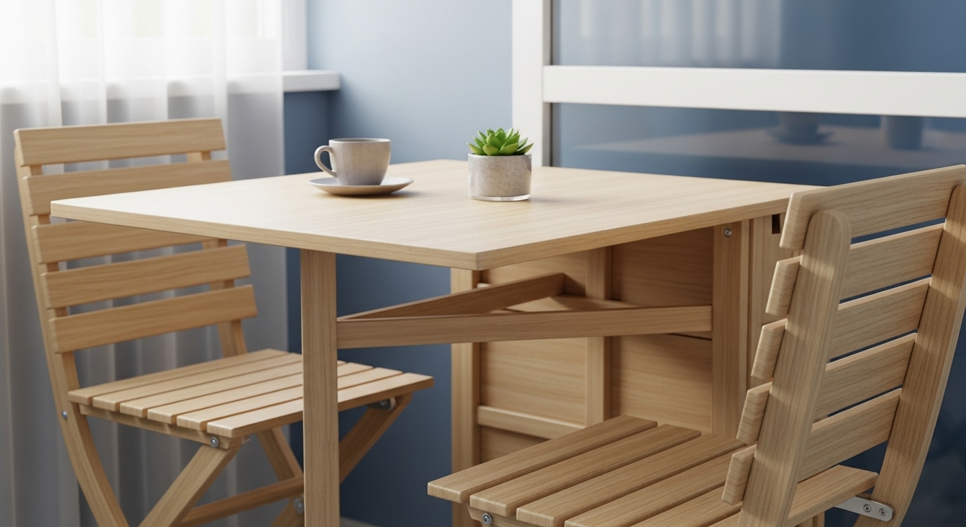작은 베란다에는 공간을 효율적으로 활용할 수 있는 가구가 필수입니다. 필요할 때만 펼쳐서 사용하고, 사용하지 않을 때는 접어둘 수 있는 접이식 테이블이나 벽에 붙여 쓰는 바 테이블을 추천해요. 의자 역시 스택형(쌓을 수 있는)이나 접이식을 선택하면 좋습니다. 소재는 가볍고 관리가 쉬운 라탄, 플라스틱, 혹은 원목을 활용한 제품이 베란다 환경에 잘 어울립니다.