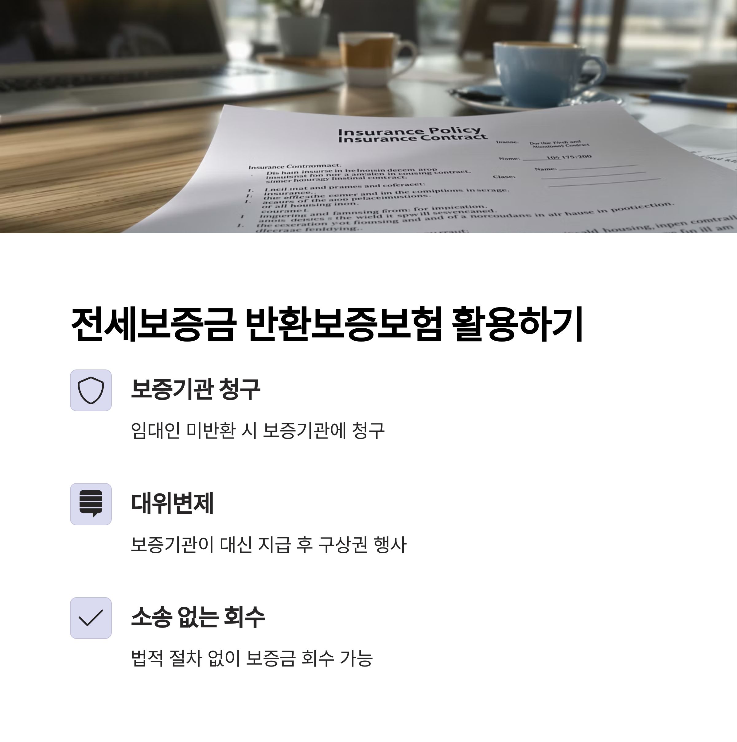 | 보증보험 활용 | 보증기관을 통한 보증금 회수 |