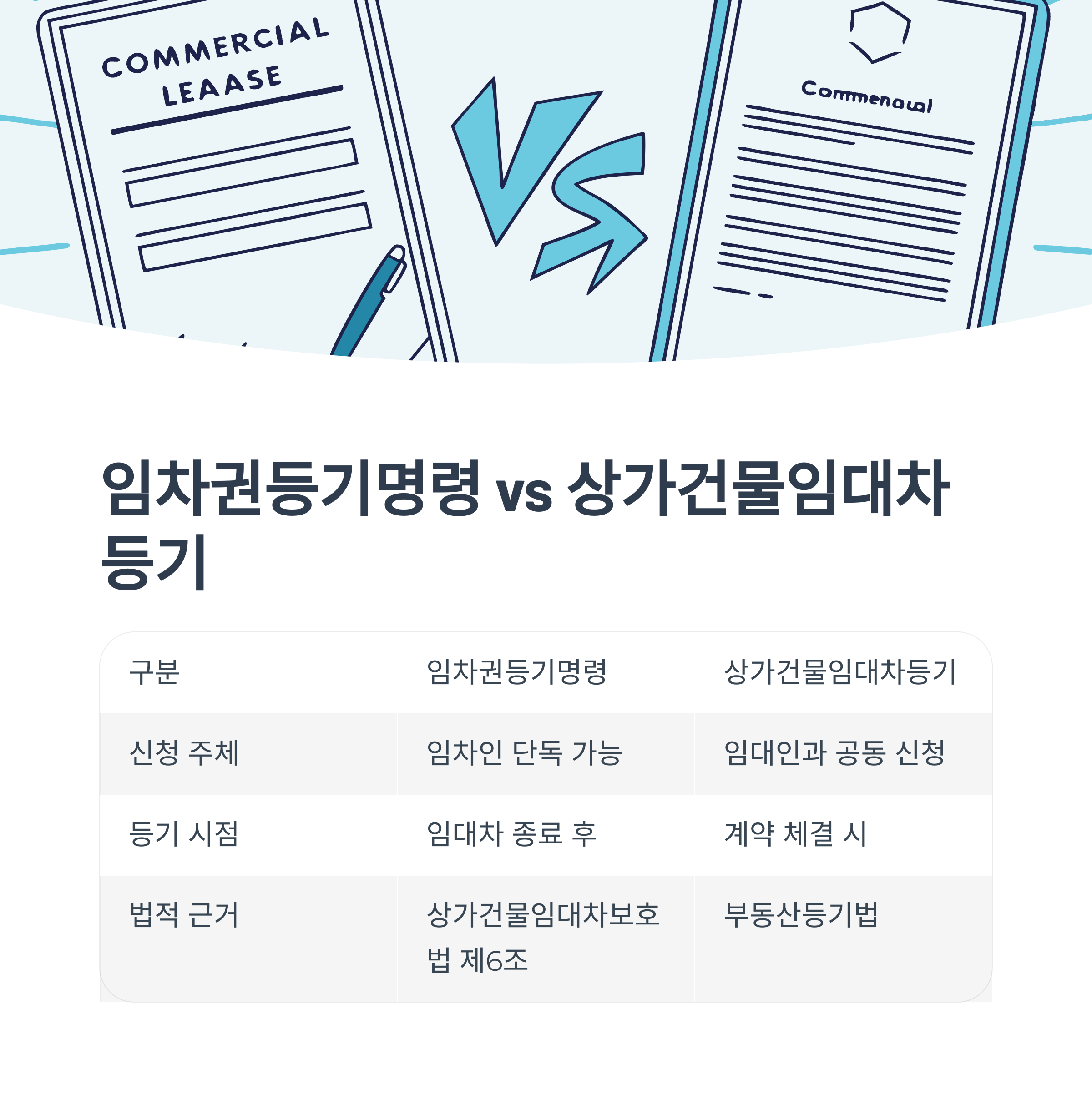| 법적 근거 | 상가건물임대차보호법 제6조 | 부동산등기법 등 |
