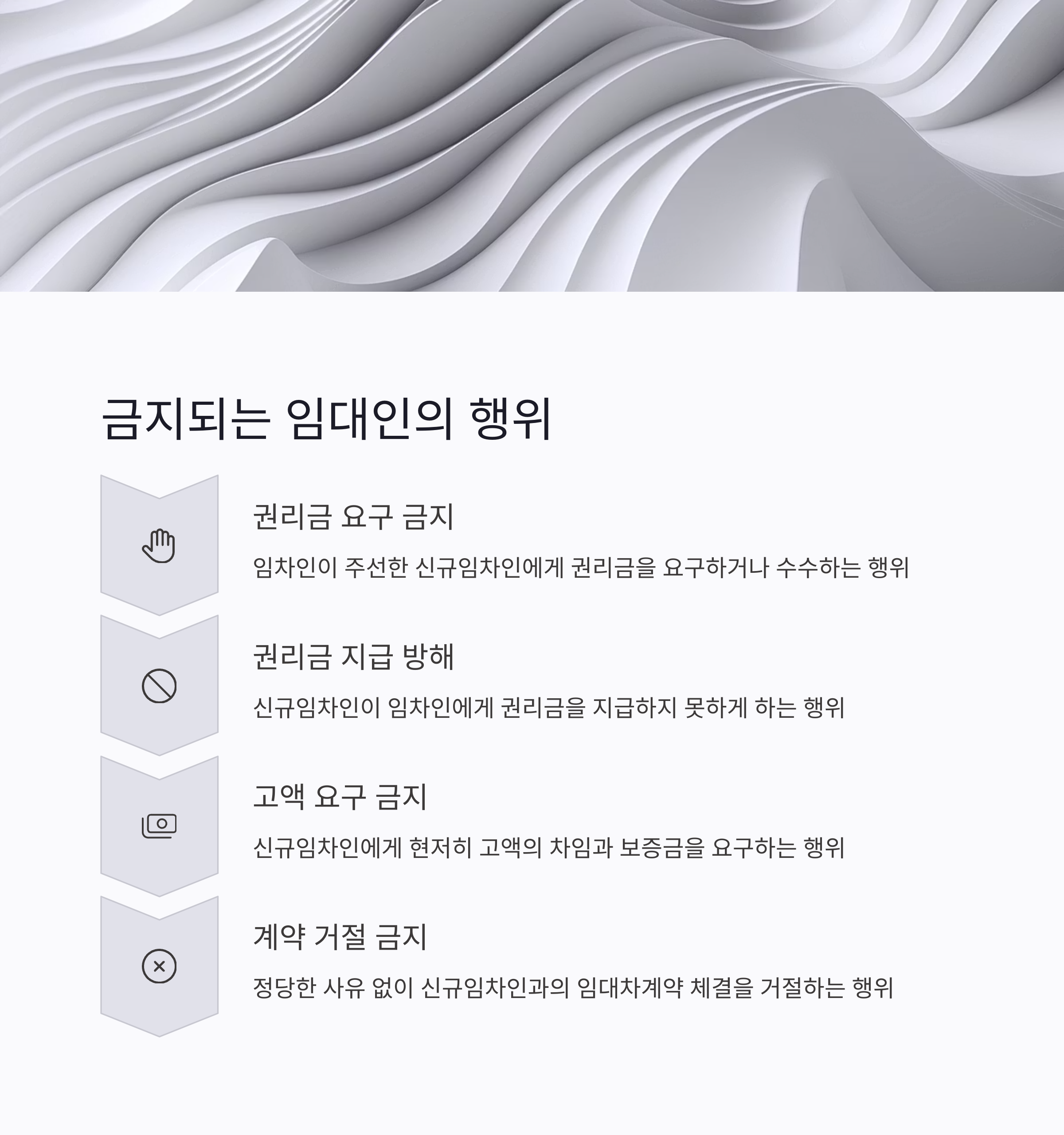 - 신규임차인에게 현저히 고액의 차임과 보증금을 요구하는 행위