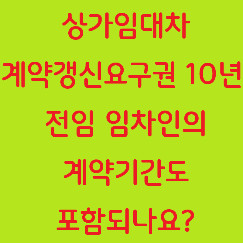 - 상가임차인의 계약갱신요구권은 본인의 최초 임대차일부터 10년 계산합니다.