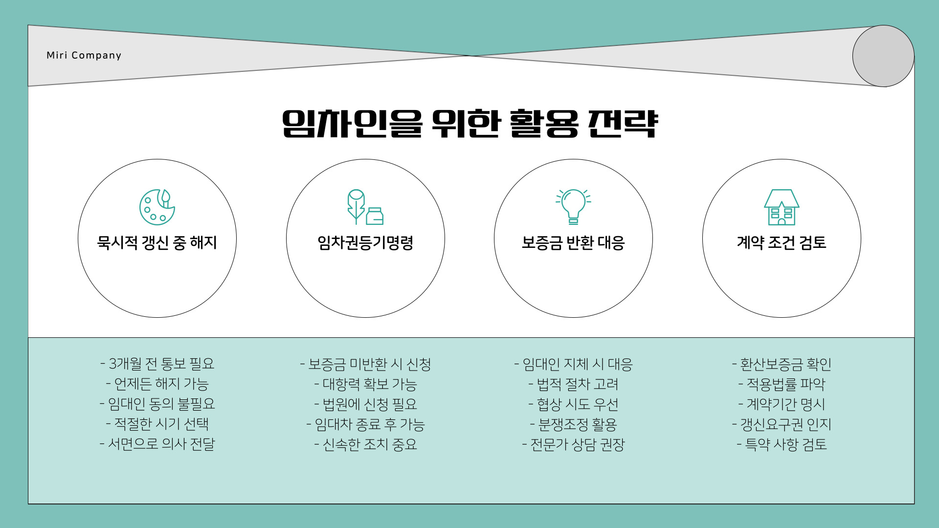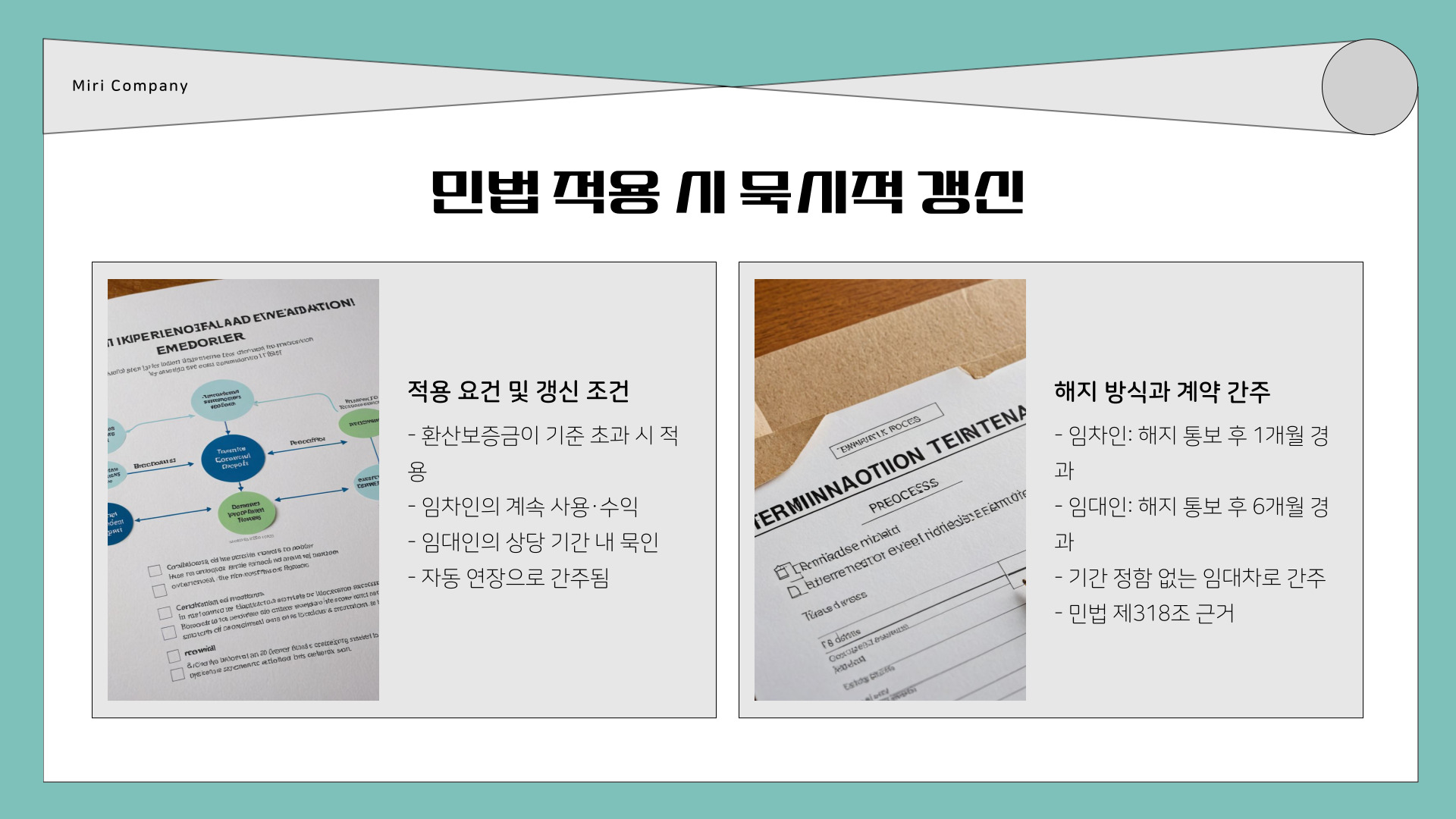 - 묵시적 갱신 중 언제든 해지 가능 (3개월 전 통보 조건)