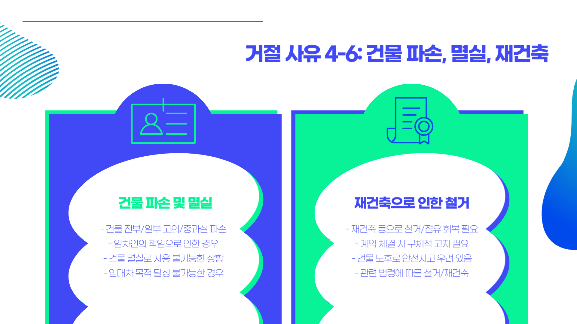 하지만 연체, 무단전대, 파손, 재건축 사유 등