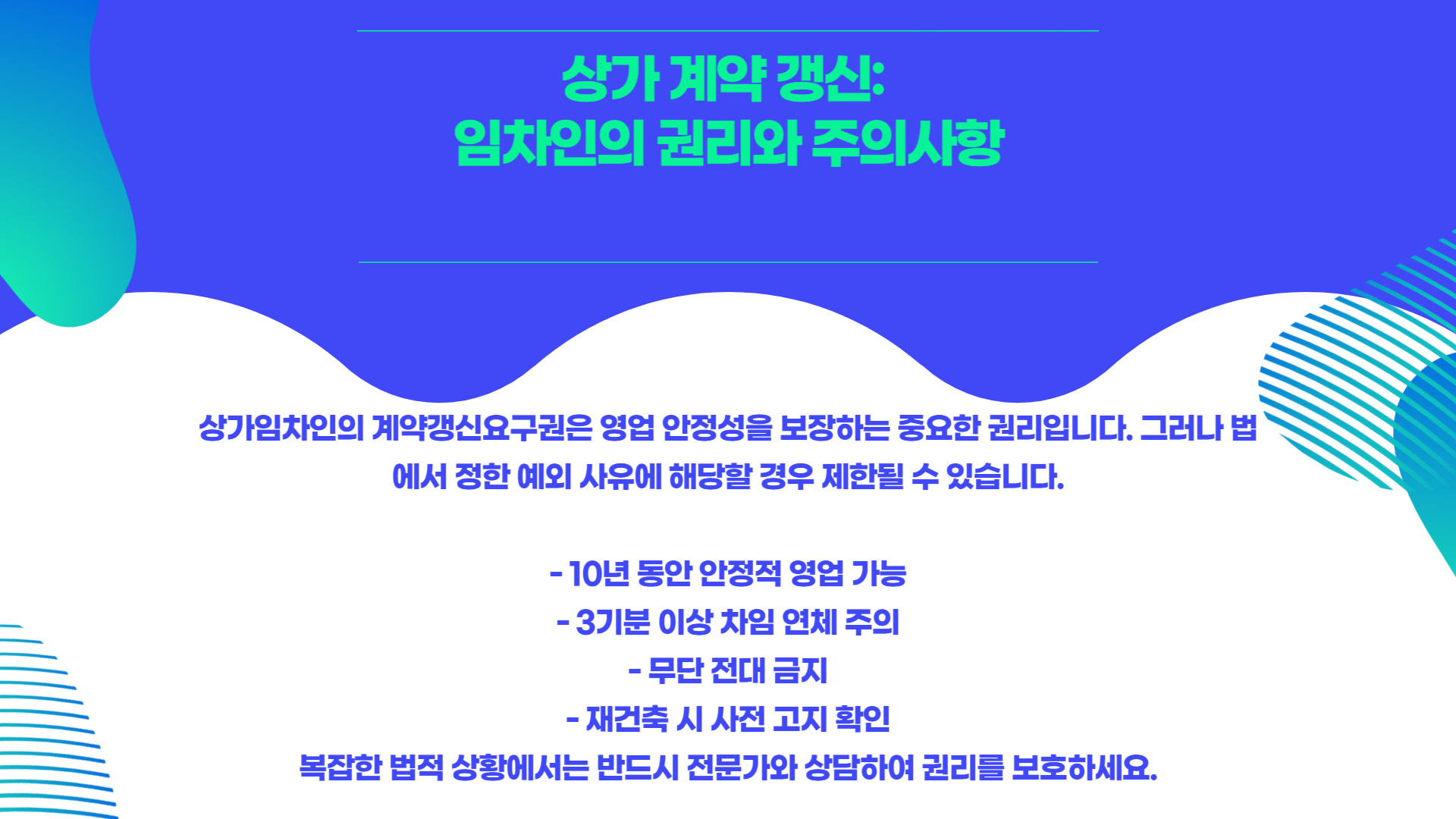 영업 안정성과 권리금 회수의 기본 전제 조건입니다.