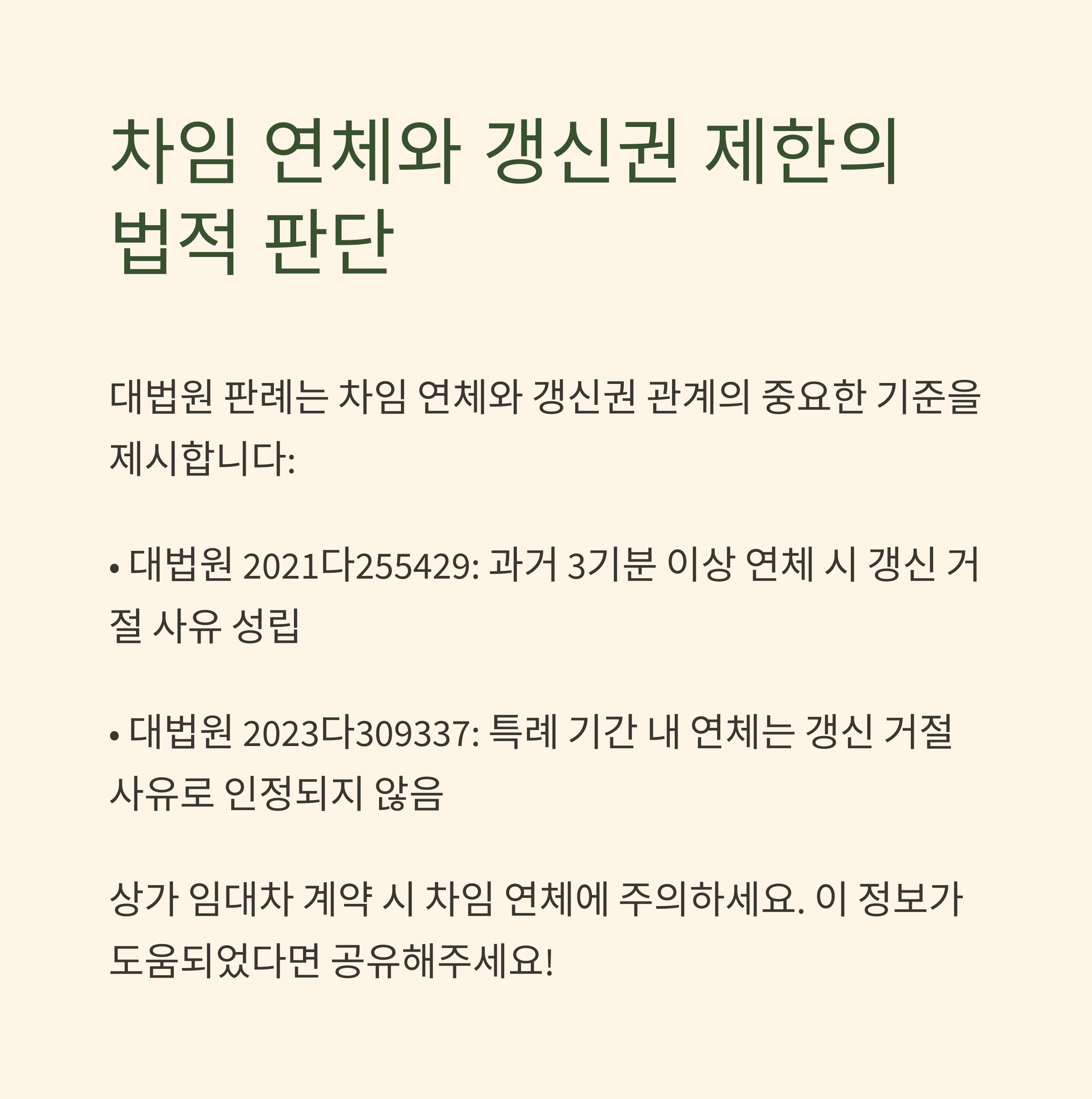 이러한 판례는 차임 연체와 갱신권의 관계를 판단하는 기준으로 활용됩니다.