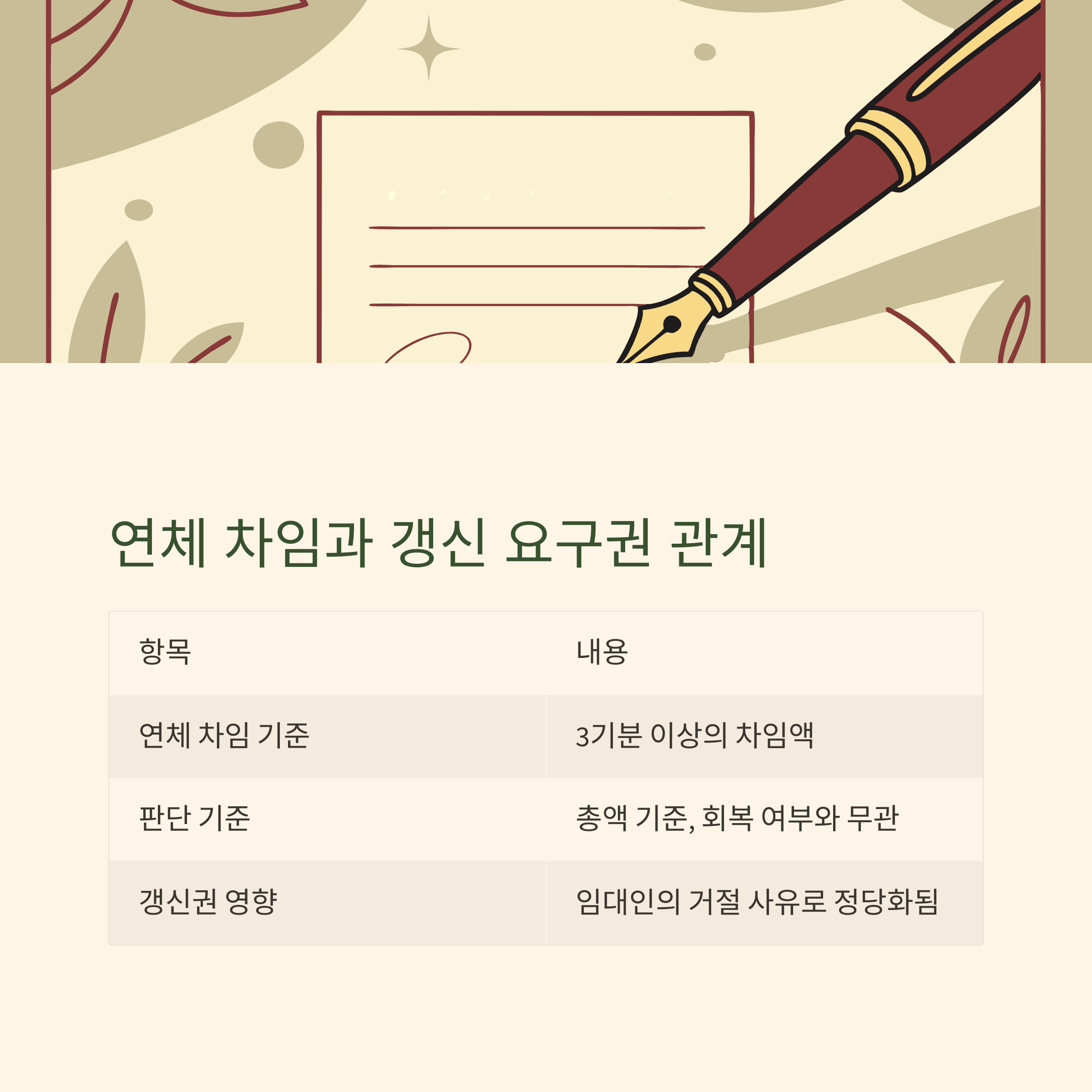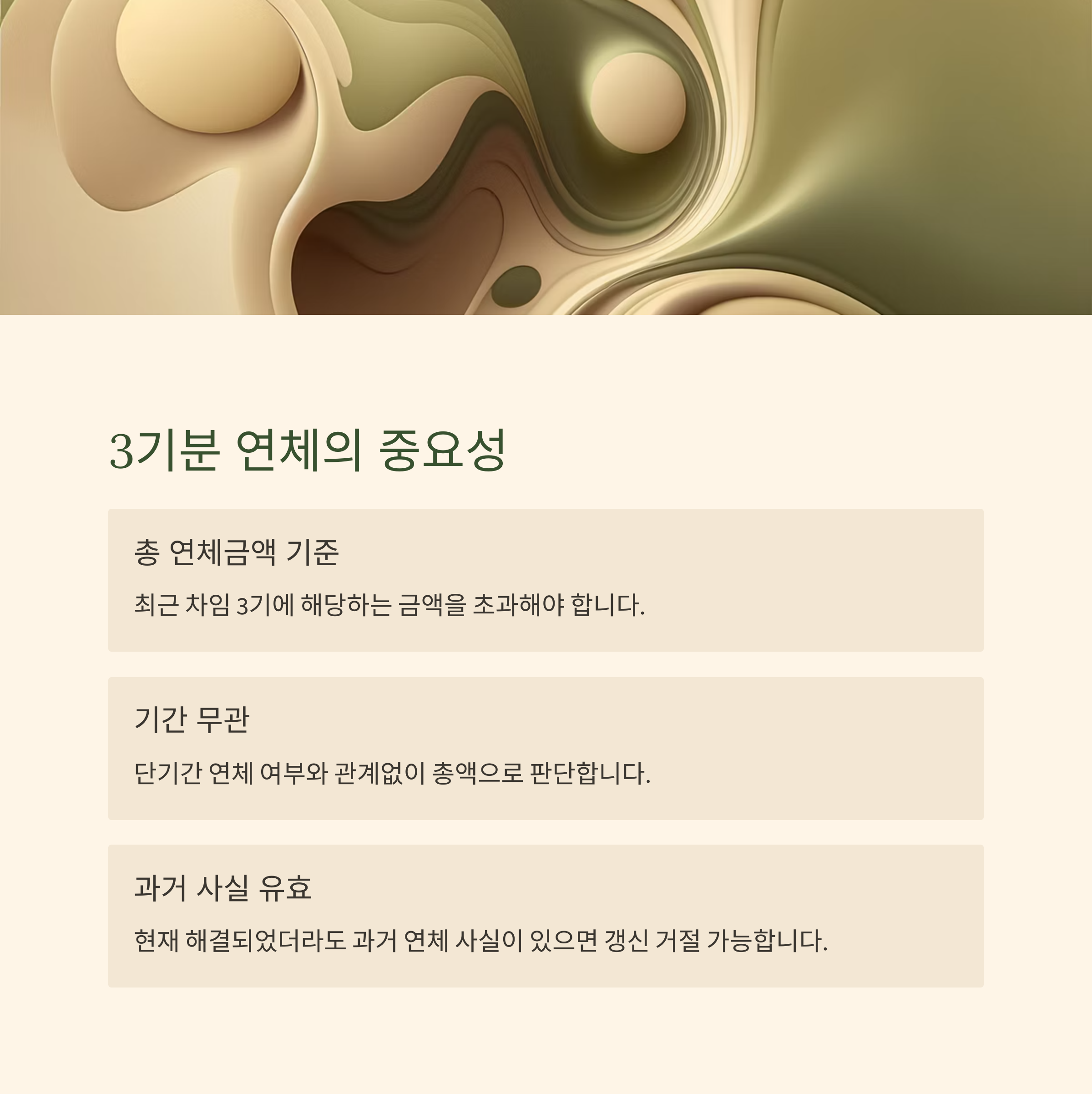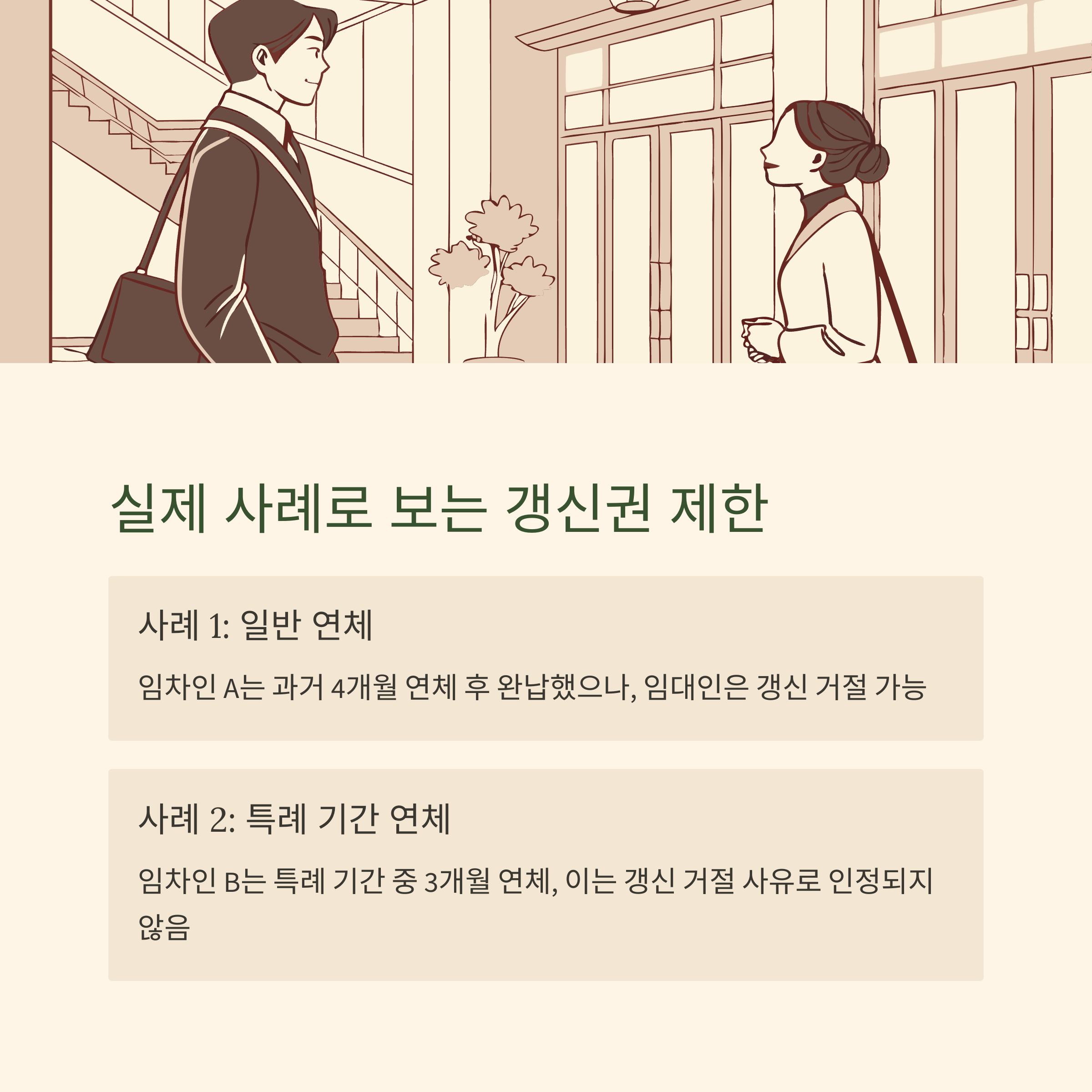 - 계약 갱신 시 임대인은 과거 연체 사실을 근거로 갱신을 거절할 수 있으며,