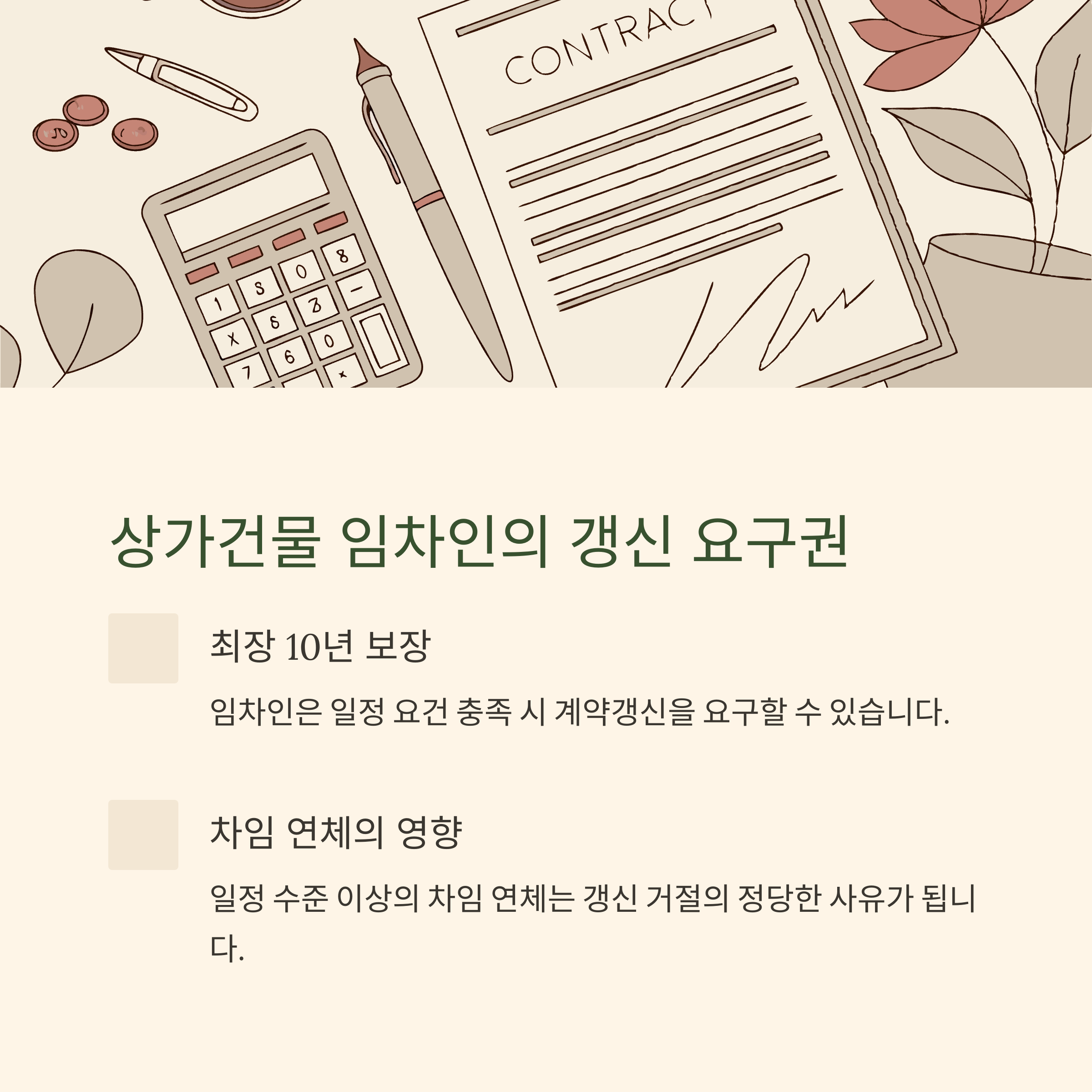 이때 계약갱신 요구권은 최장 10년까지 보장되며, 임대인은 정당한 사유가 없는 한 이를 거절할 수 없습니다.