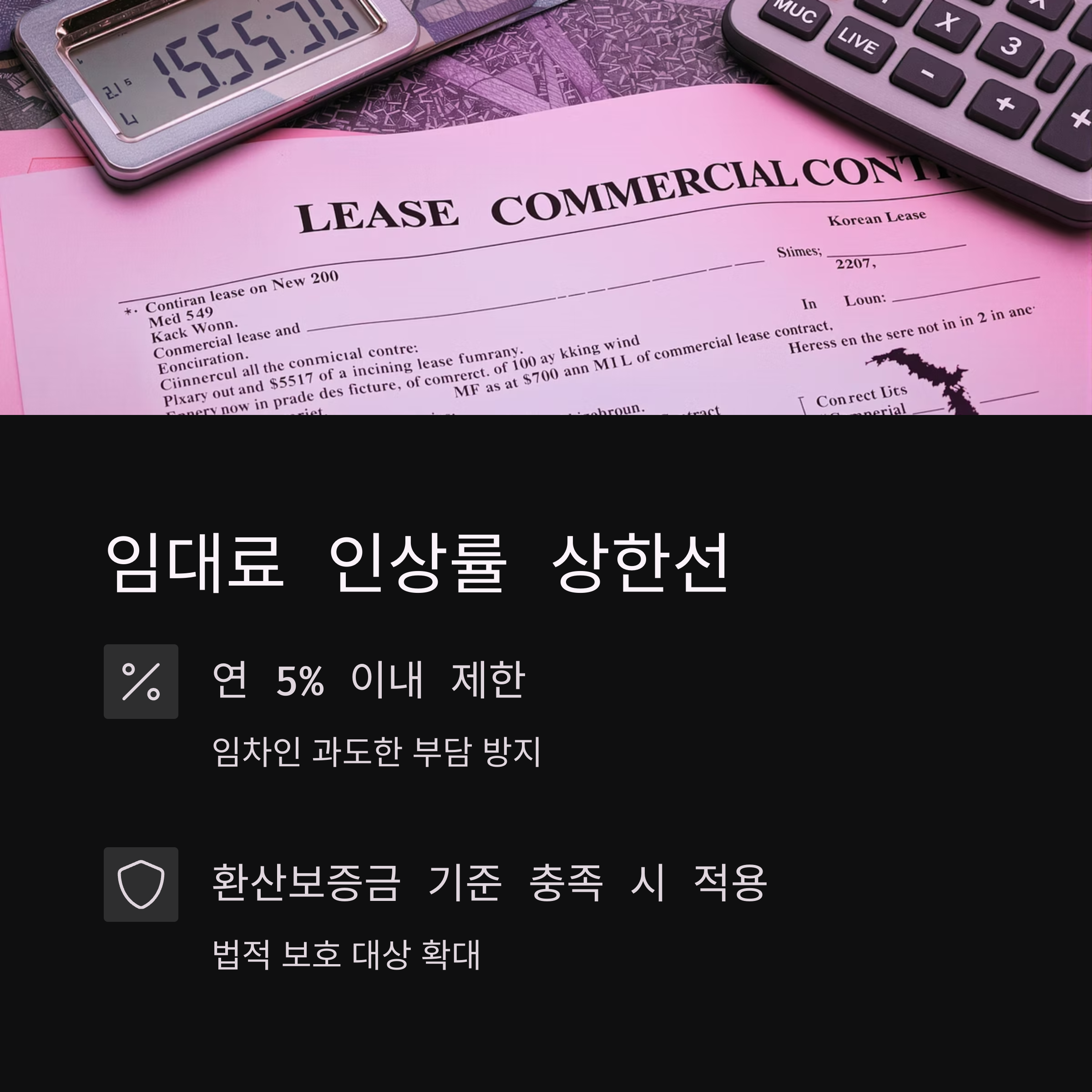 현재 상가건물임대차보호법은 임대료 인상률을 연 5% 이내로 제한하고 있습니다. 이는 임차인의 과도한 부담을 방지하기 위한 조치로, 환산보증금 기준을 충족하는 경우에 적용됩니다 .