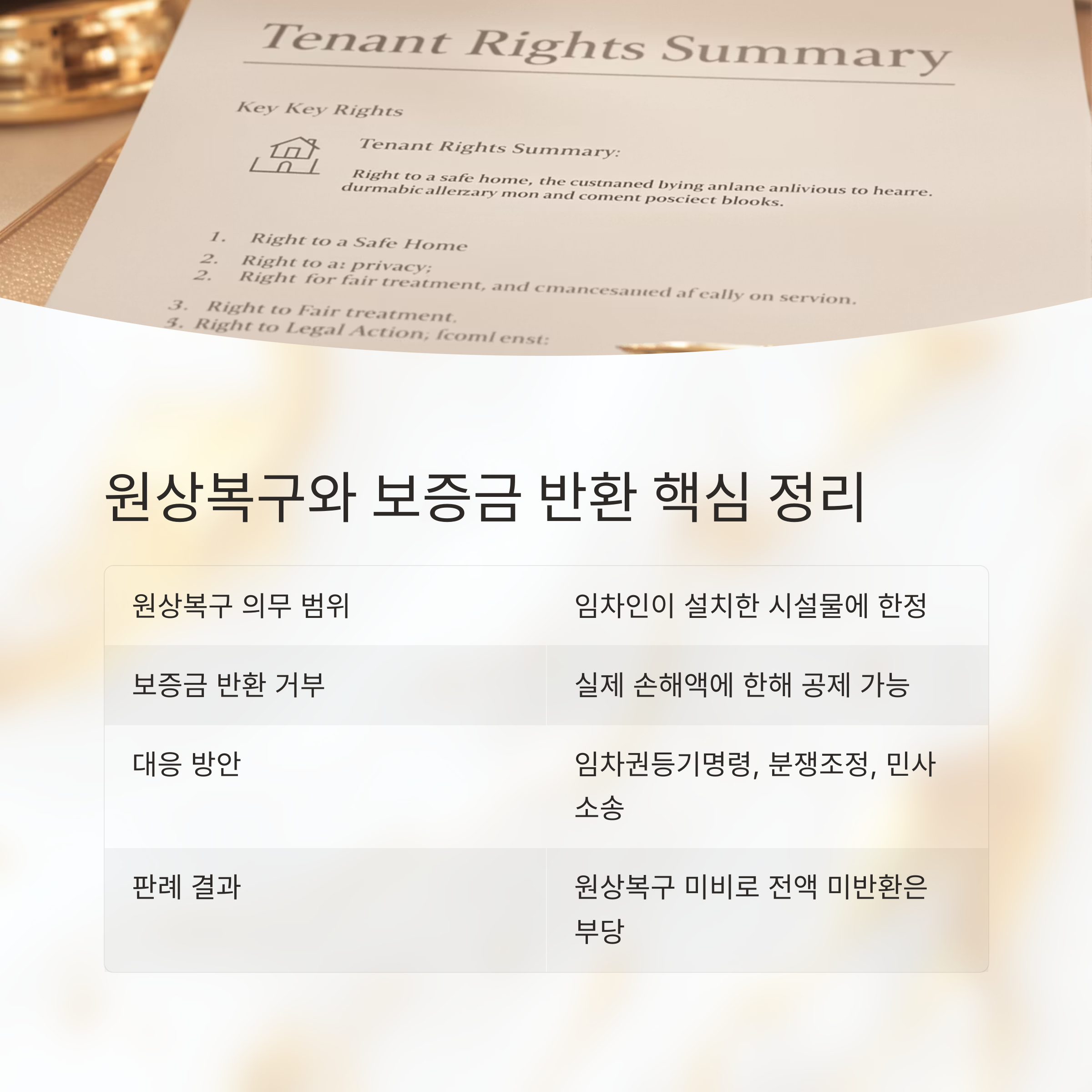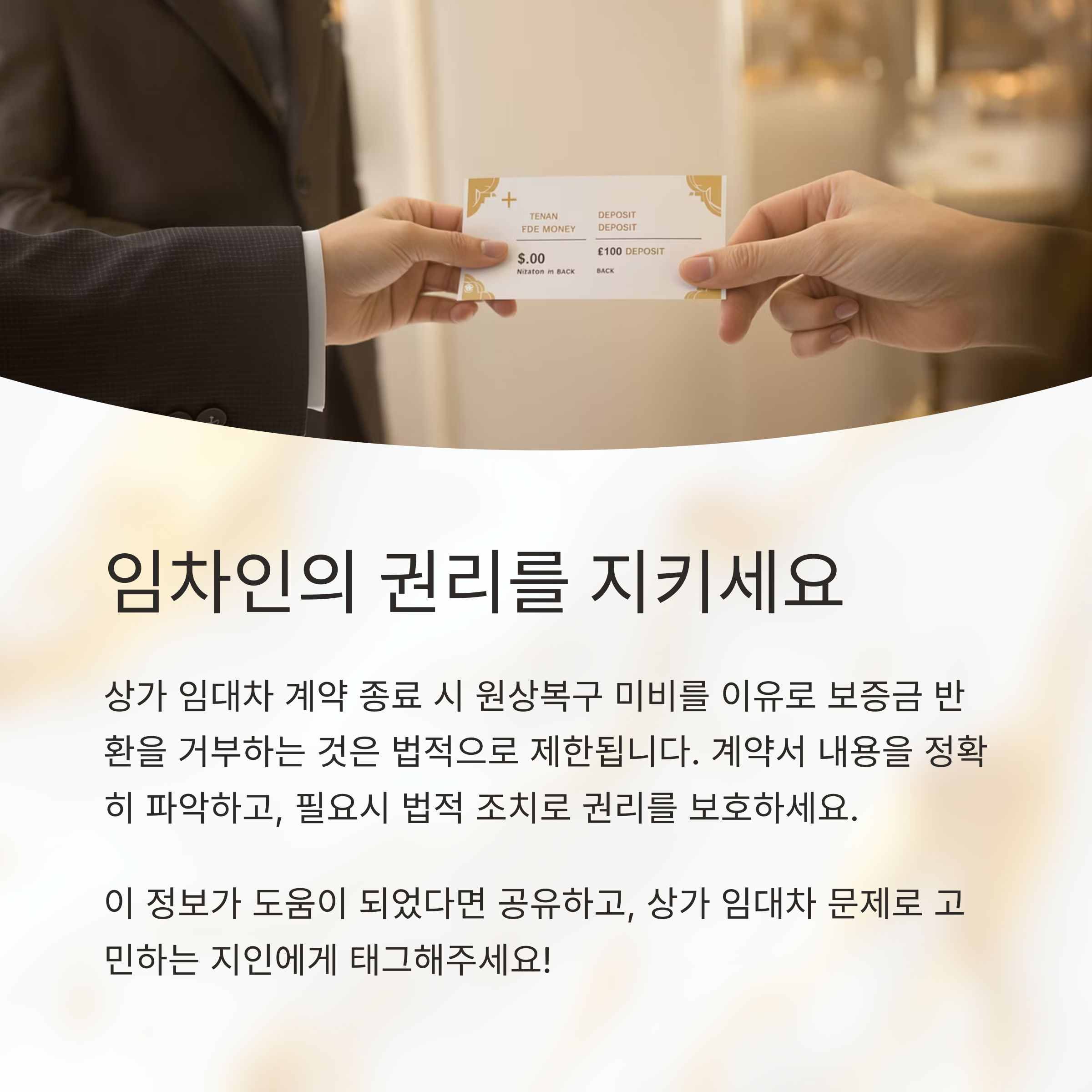 상가 임대차 계약 종료 시 원상복구 미비를 이유로 보증금 반환을 거부하는 것은 법적으로 제한된다. 임차인은 계약서의 내용을 정확히 파악하고, 필요시 법적 조치를 통해 권리를 보호해야 한다.