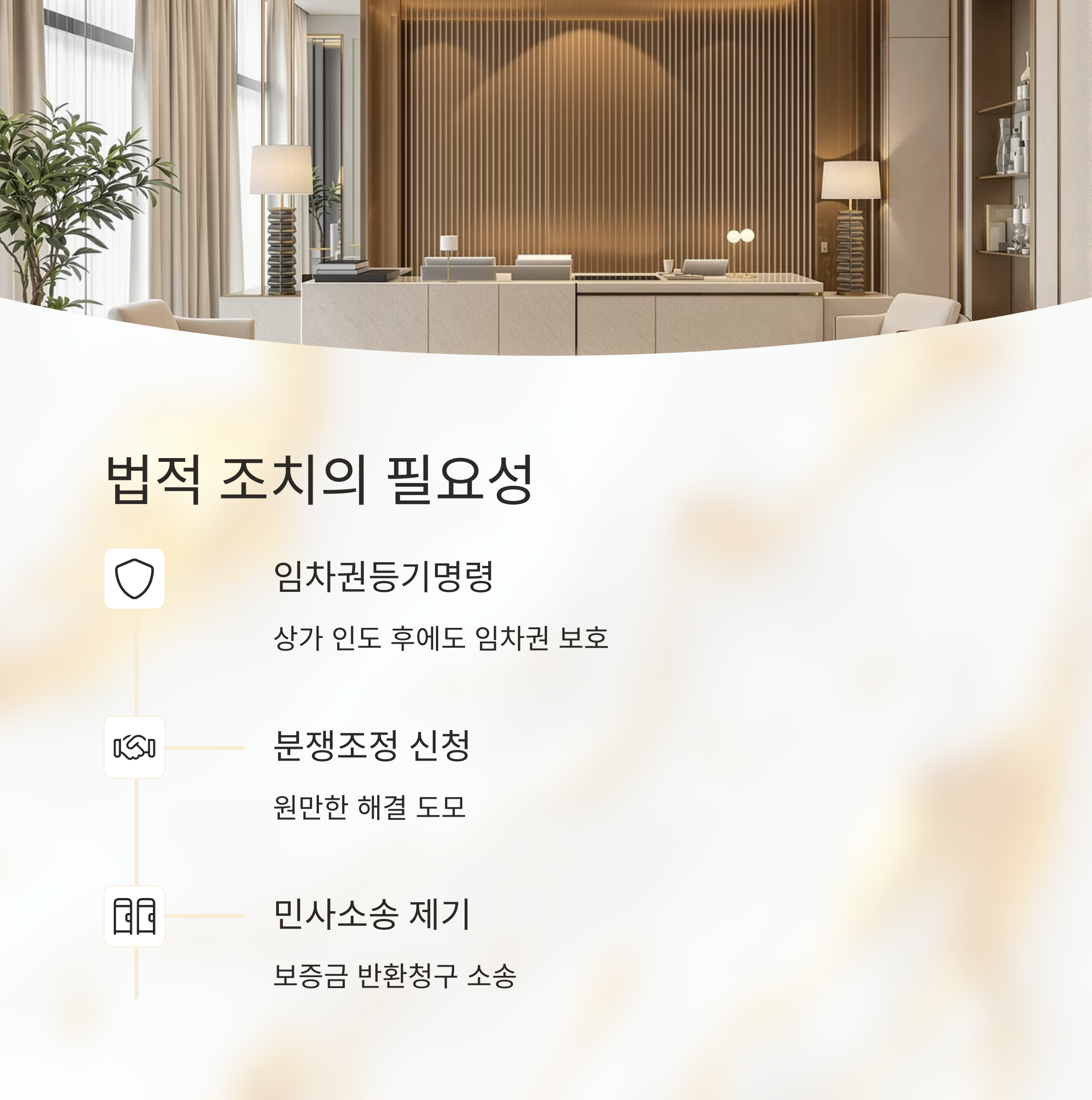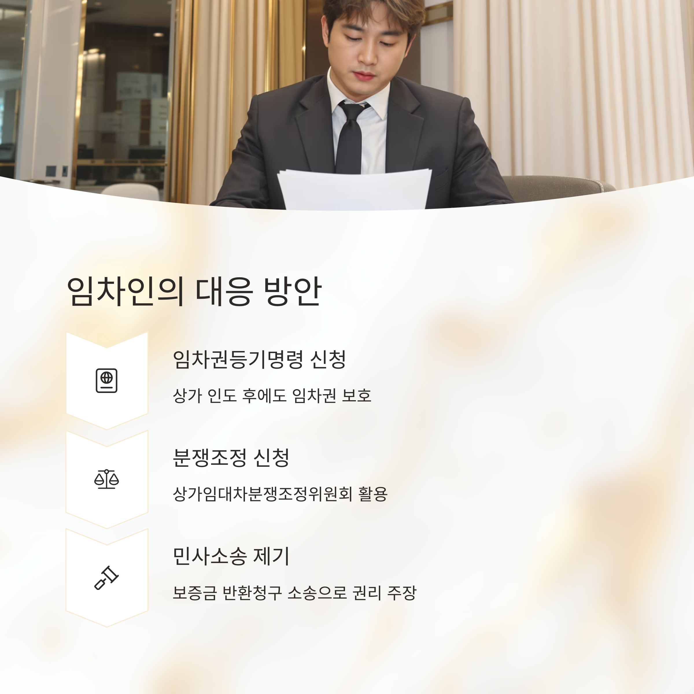 - 임차권등기명령 신청: 보증금 반환을 받지 못한 상태에서 상가를 인도하면 임차권이 소멸될 수 있으므로, 임차권등기명령을 통해 권리를 보호할 수 있다.