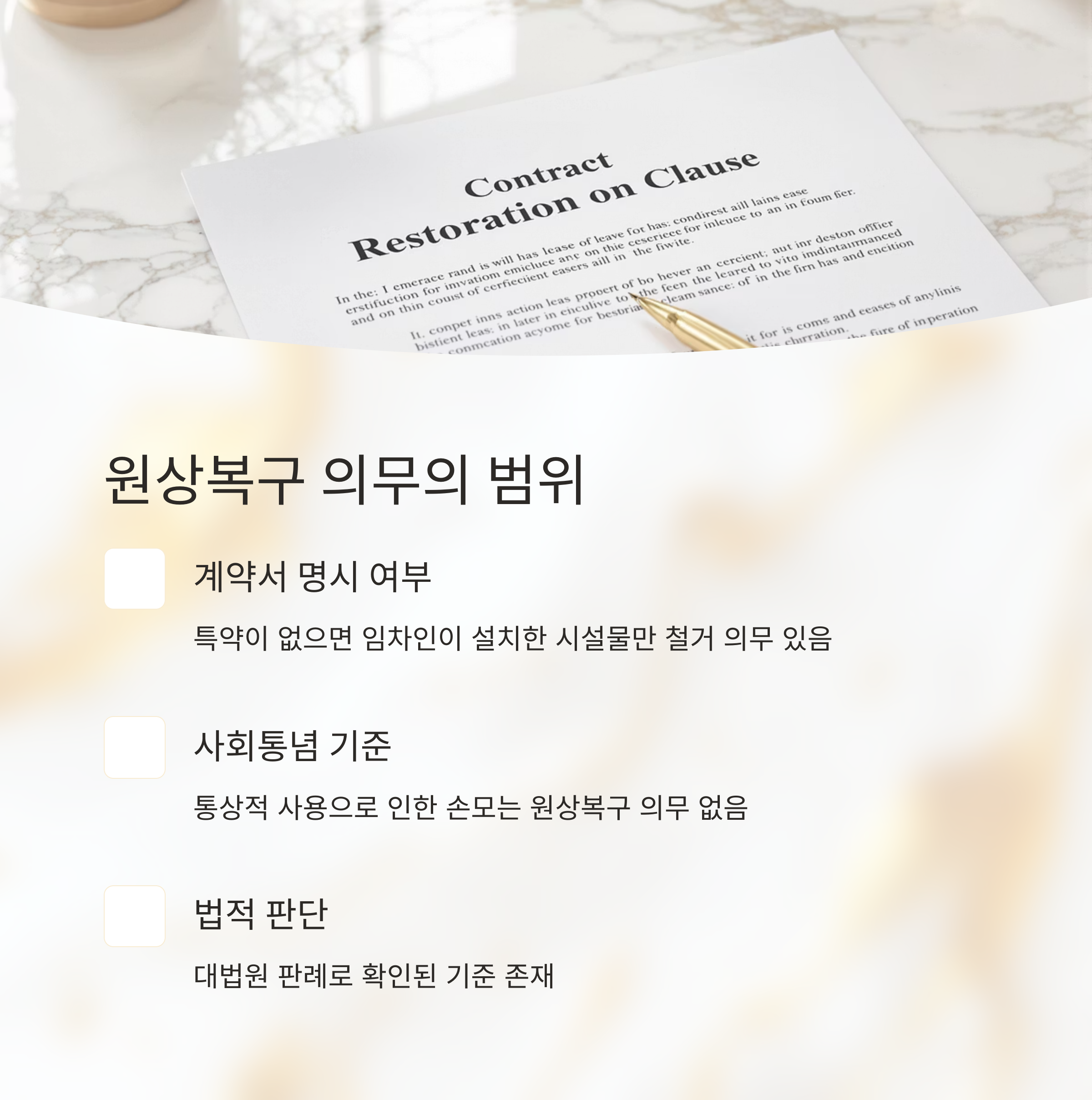 | 원상복구 의무 범위 | 임차인이 설치한 시설물에 한정 |