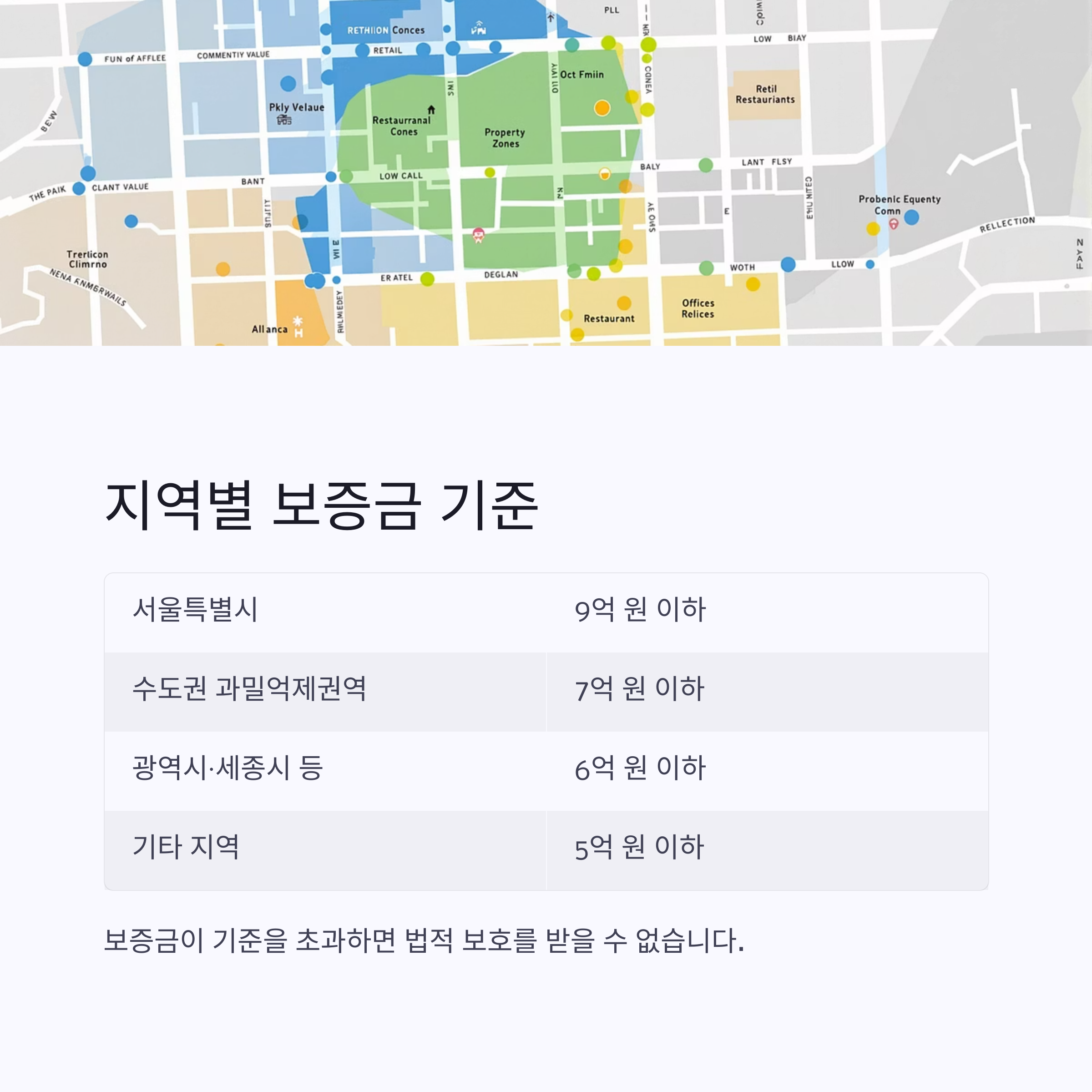 2025년 기준 지역별 보증금 상한은 아래와 같습니다.