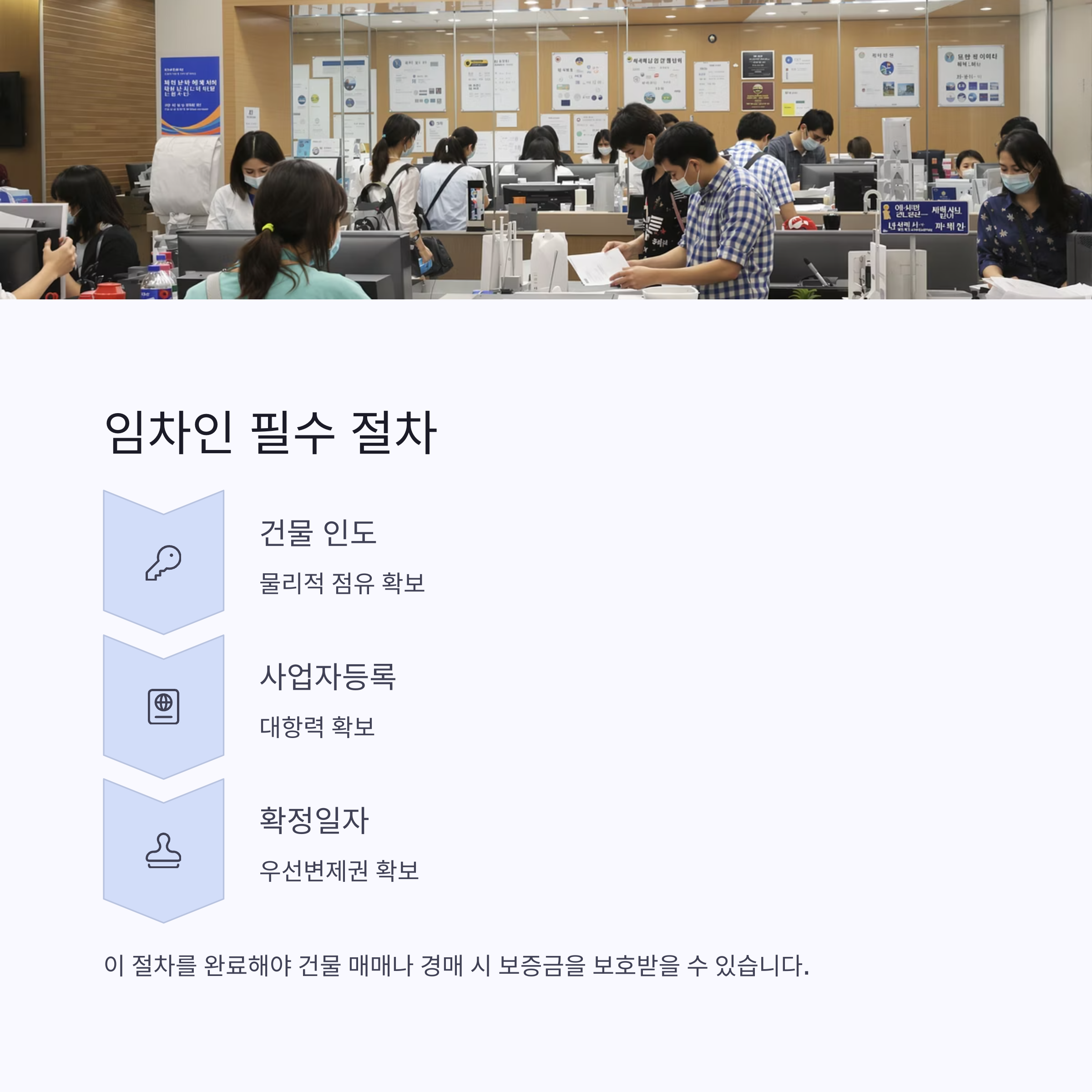 임차인은 계약 직후 건물의 인도와 사업자등록을 완료해야 대항력을 얻습니다.