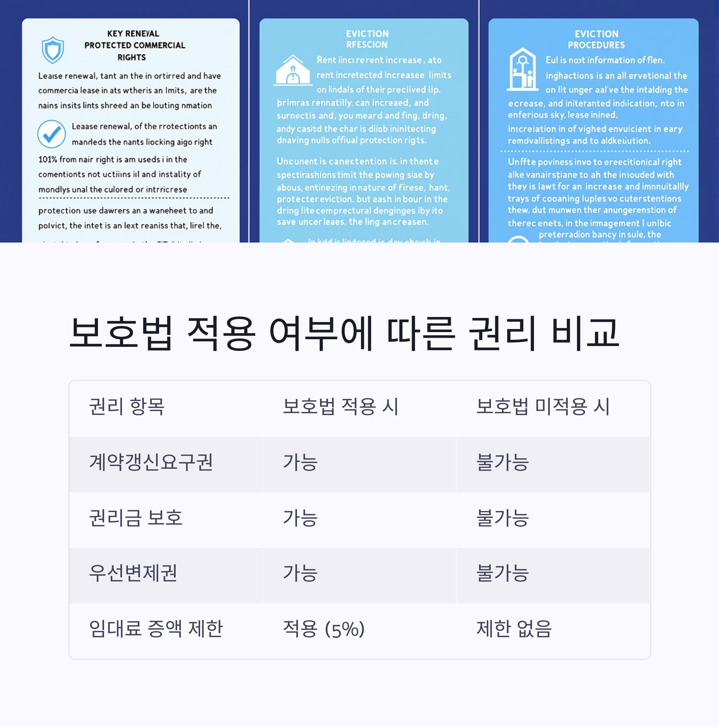 | 임대료 증액 제한 | 적용 (5%) | 제한 없음 |