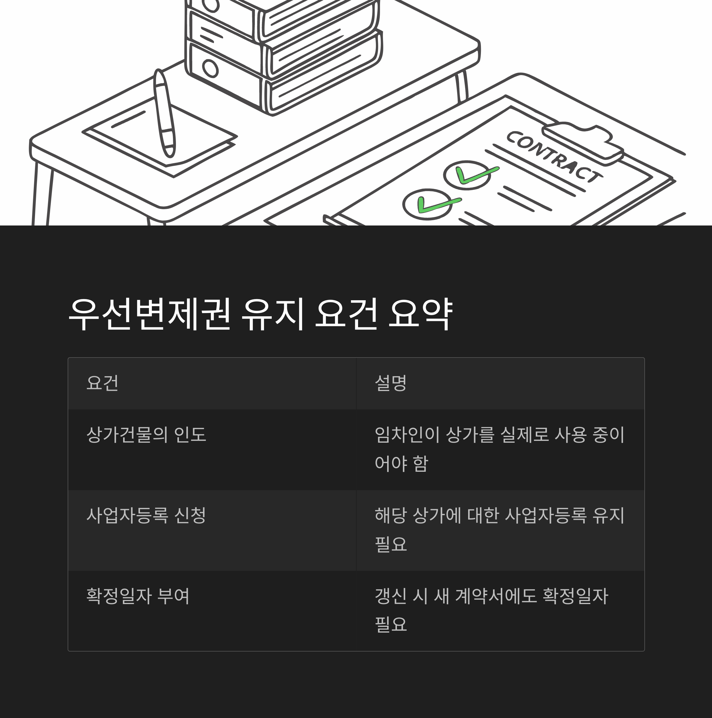 상가 임대차 계약 갱신 시 우선변제권의 유지 조건은 무엇인가요?