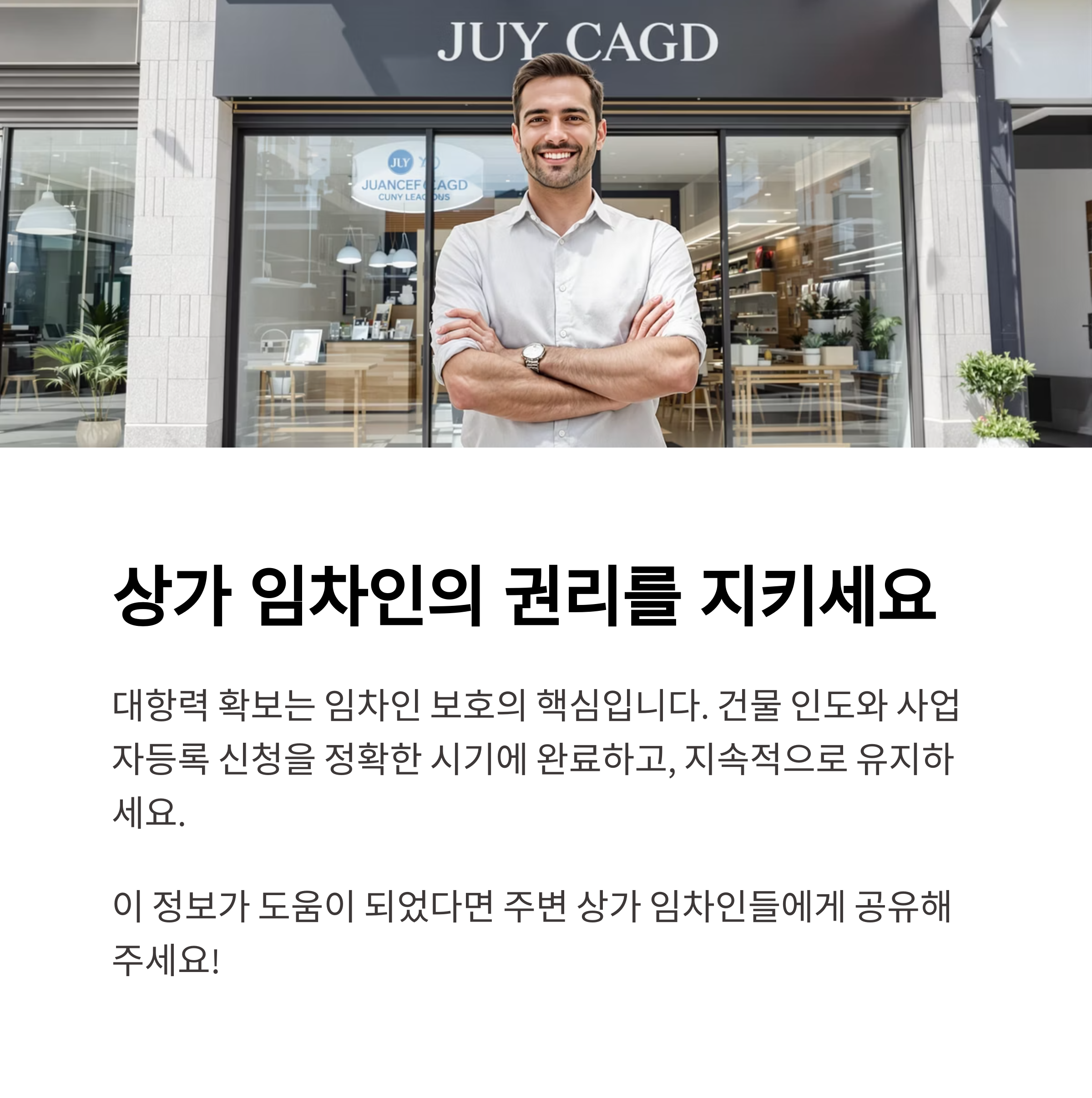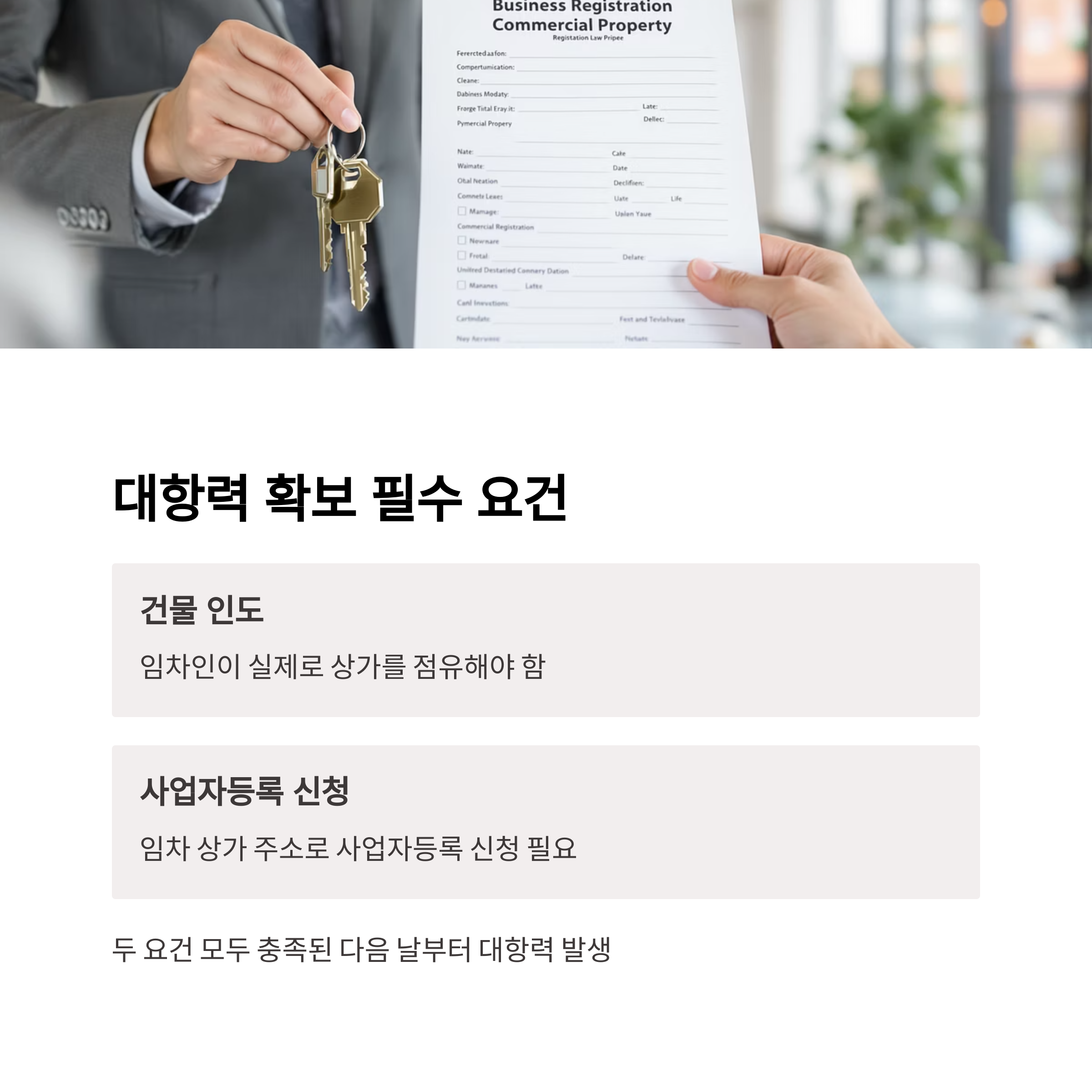 상가 임차인이 법적 보호를 받기 위해서는 대항력 요건을 명확히 이해하고 이를 정확히 충족하는 것이 필수적이다.