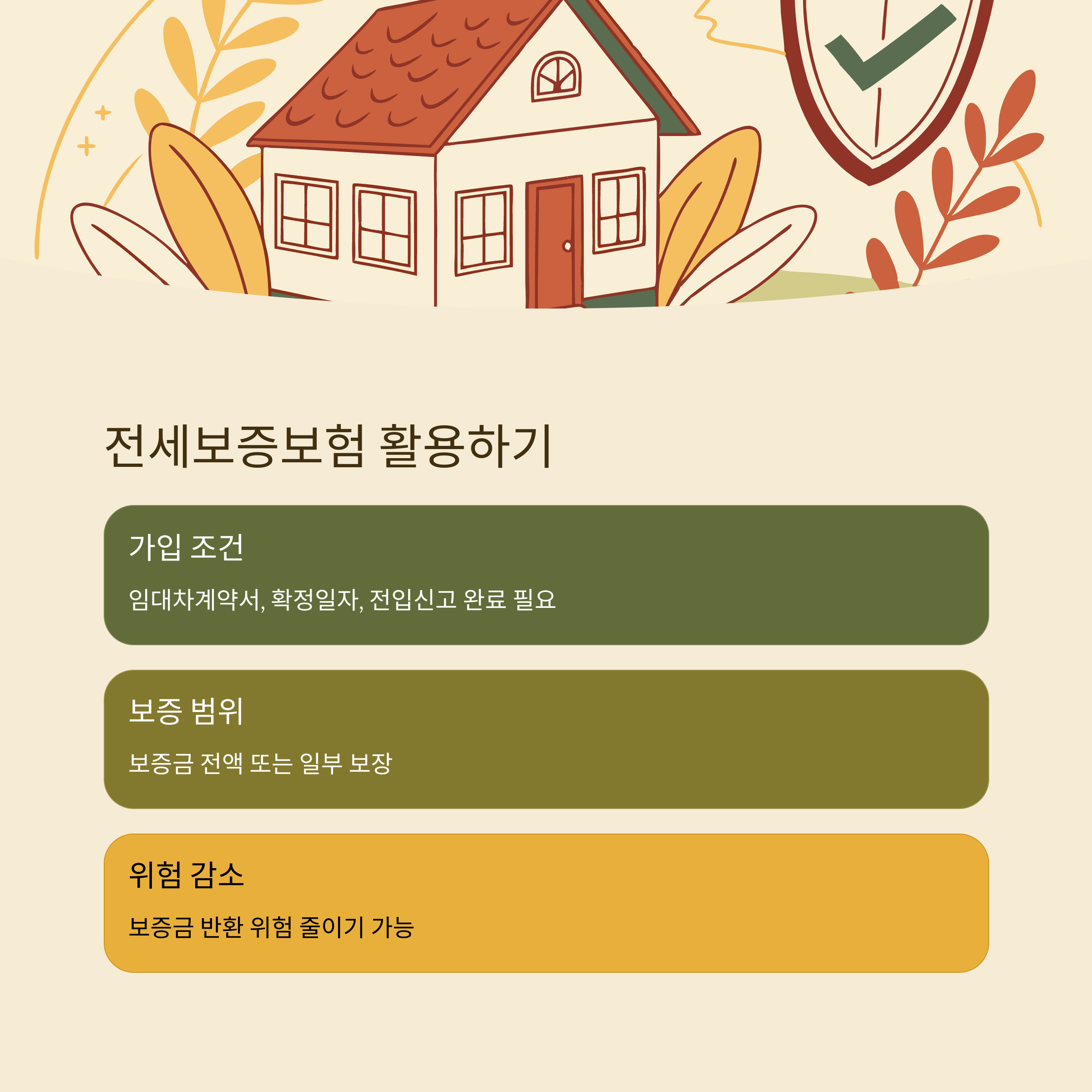 - 가입 조건: 임대차계약서, 확정일자, 전입신고 등을 완료해야 합니다.