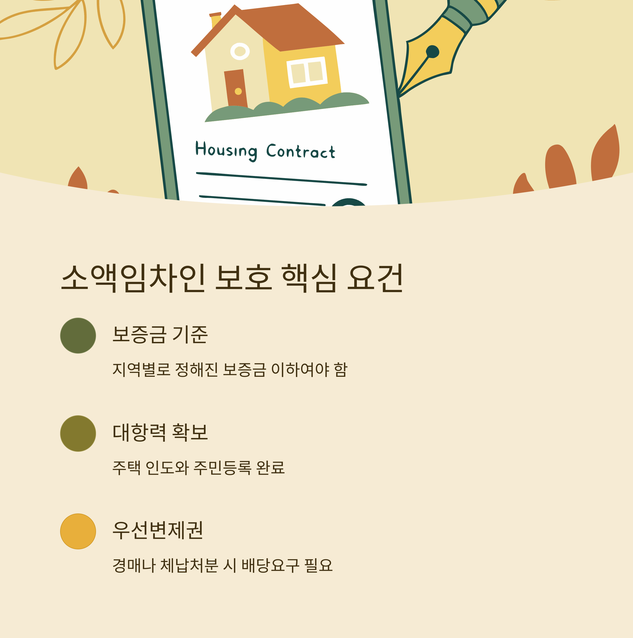 이러한 요건을 충족하면, 주택이 경매되더라도 일정 금액의 보증금을 우선적으로 변제받을 수 있습니다.