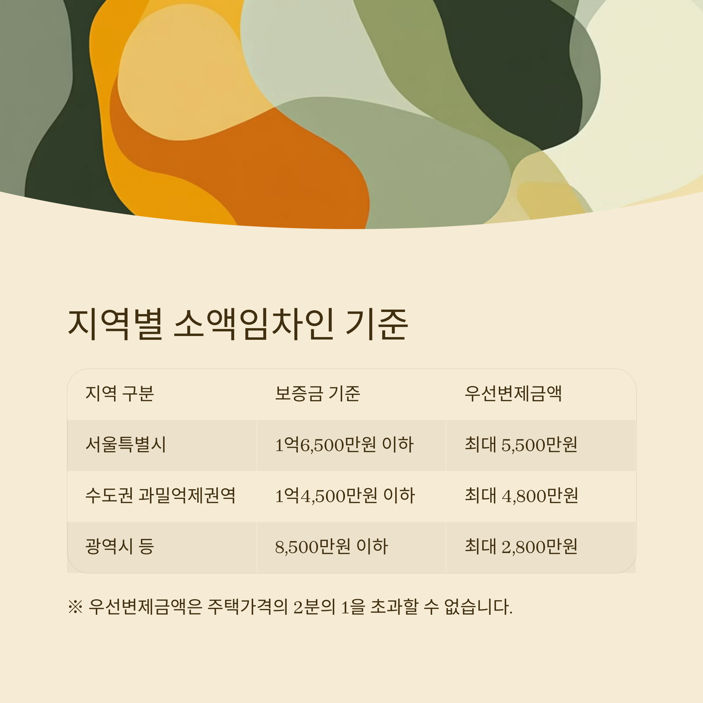 ※ 우선변제금액은 주택가격의 2분의 1을 초과할 수 없습니다.