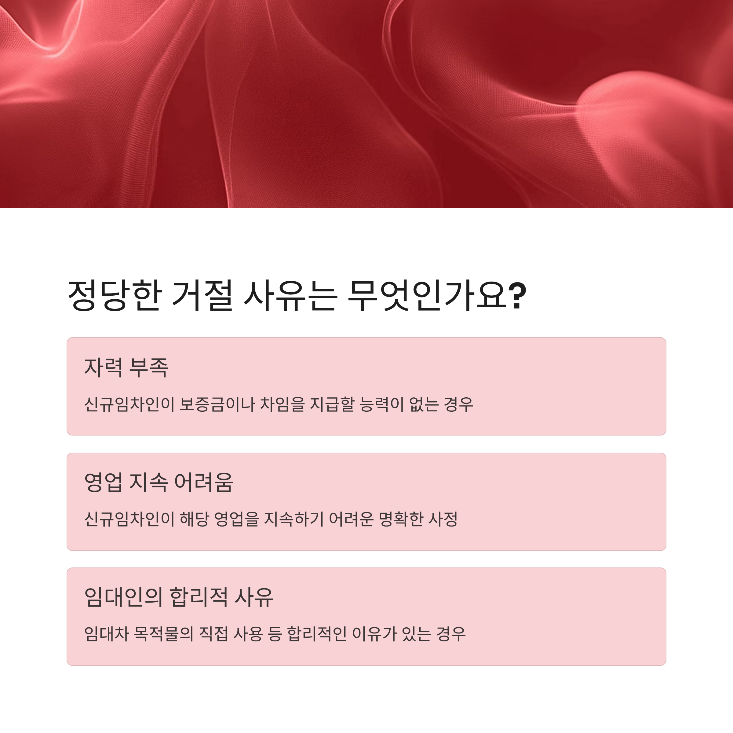 임대인의 거절이 법적으로 정당하려면 다음과 같은 요건 중 하나를 충족해야 합니다.