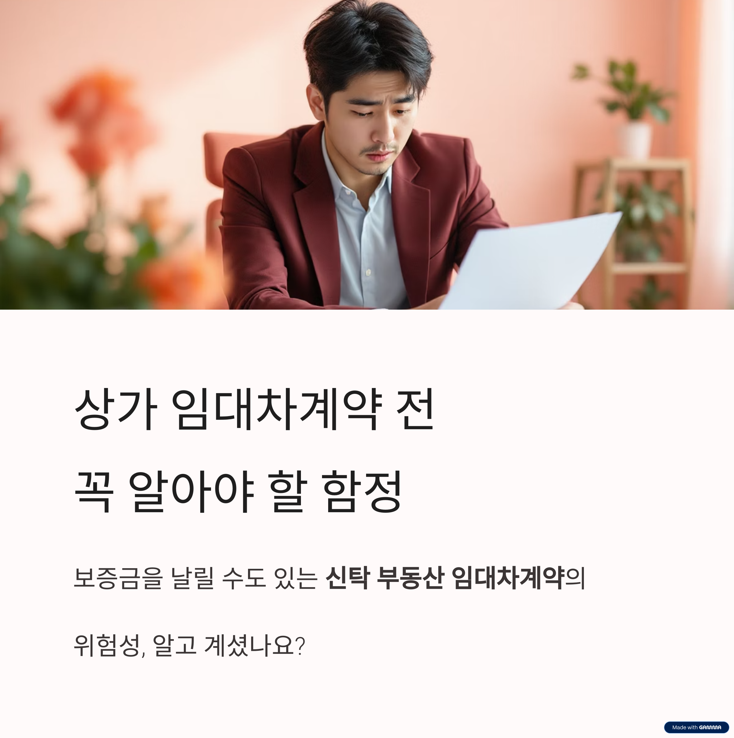 건물 시행사와 상담을 진행하며 모든 조건을 조율한 끝에 임대차계약을 체결했지만, 몇 달 뒤 황당한 소식을 듣게 됩니다.