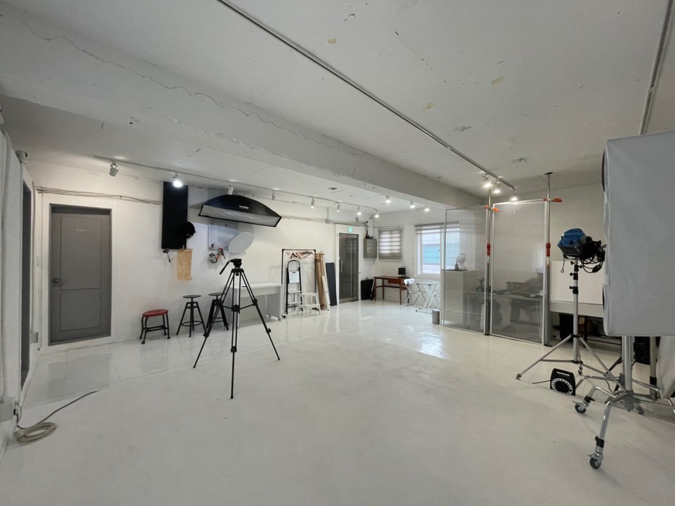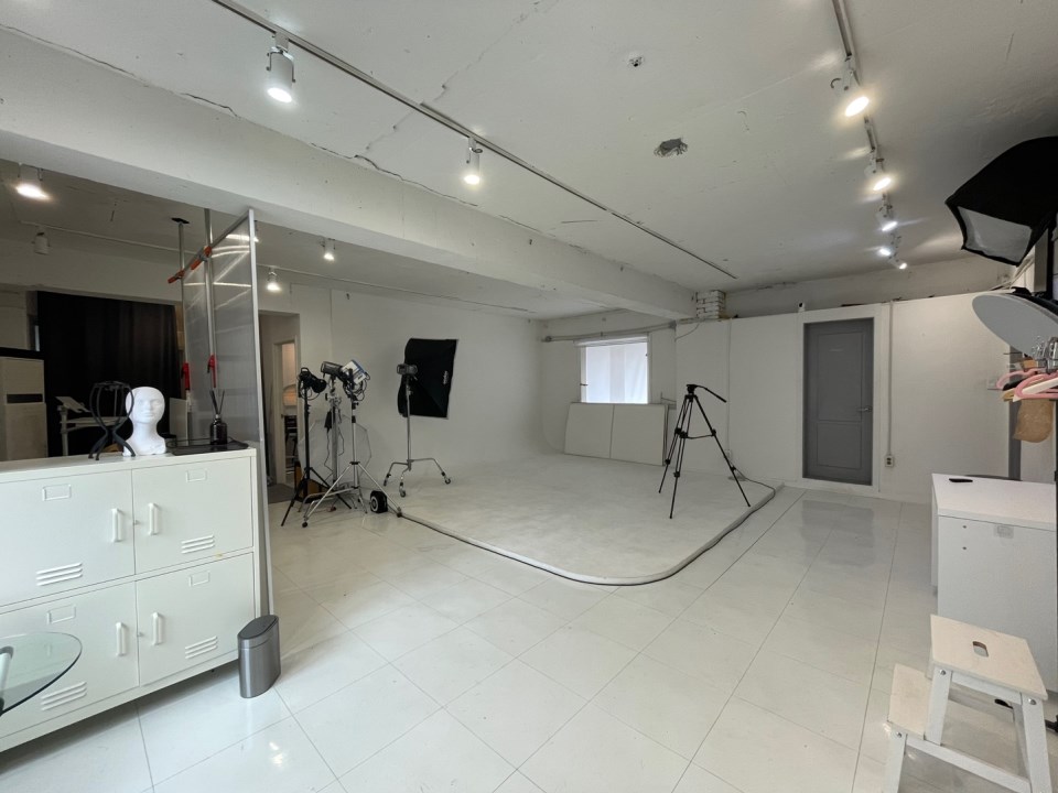 사무실 내부는 화이트톤 인테리어로 밝고 깔끔한 분위기를 제공하며, 현대적인 천정 디자인이 돋보입니다. 스튜디오로 사용하기에 적합한 구조와 함께 사무실로도 활용하기 좋은 공간입니다. 🌟