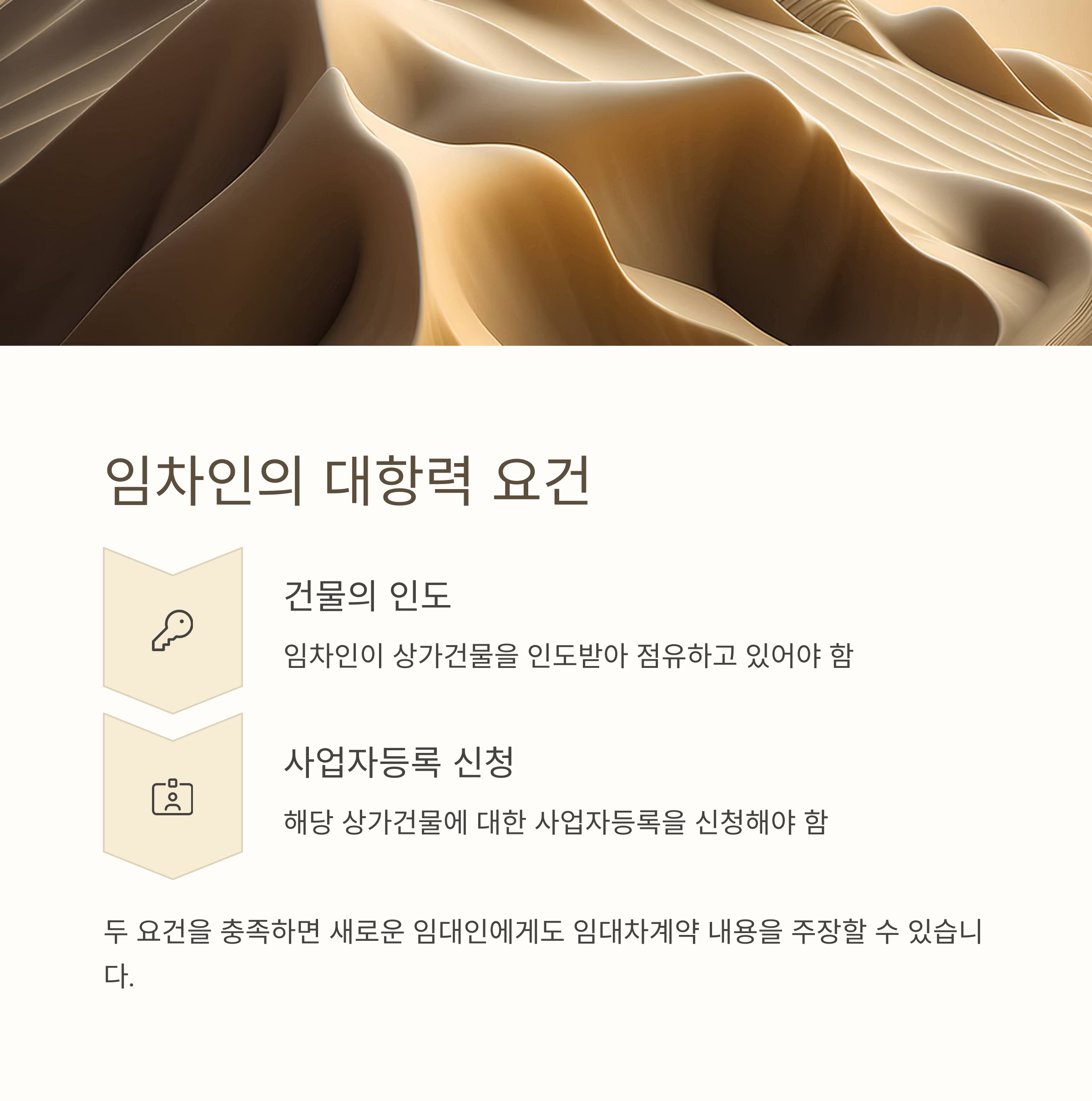 이 두 요건을 충족하면, 임차인은 임대인의 지위가 변경되더라도 새로운 임대인에게 임대차계약의 내용을 주장할 수 있습니다.