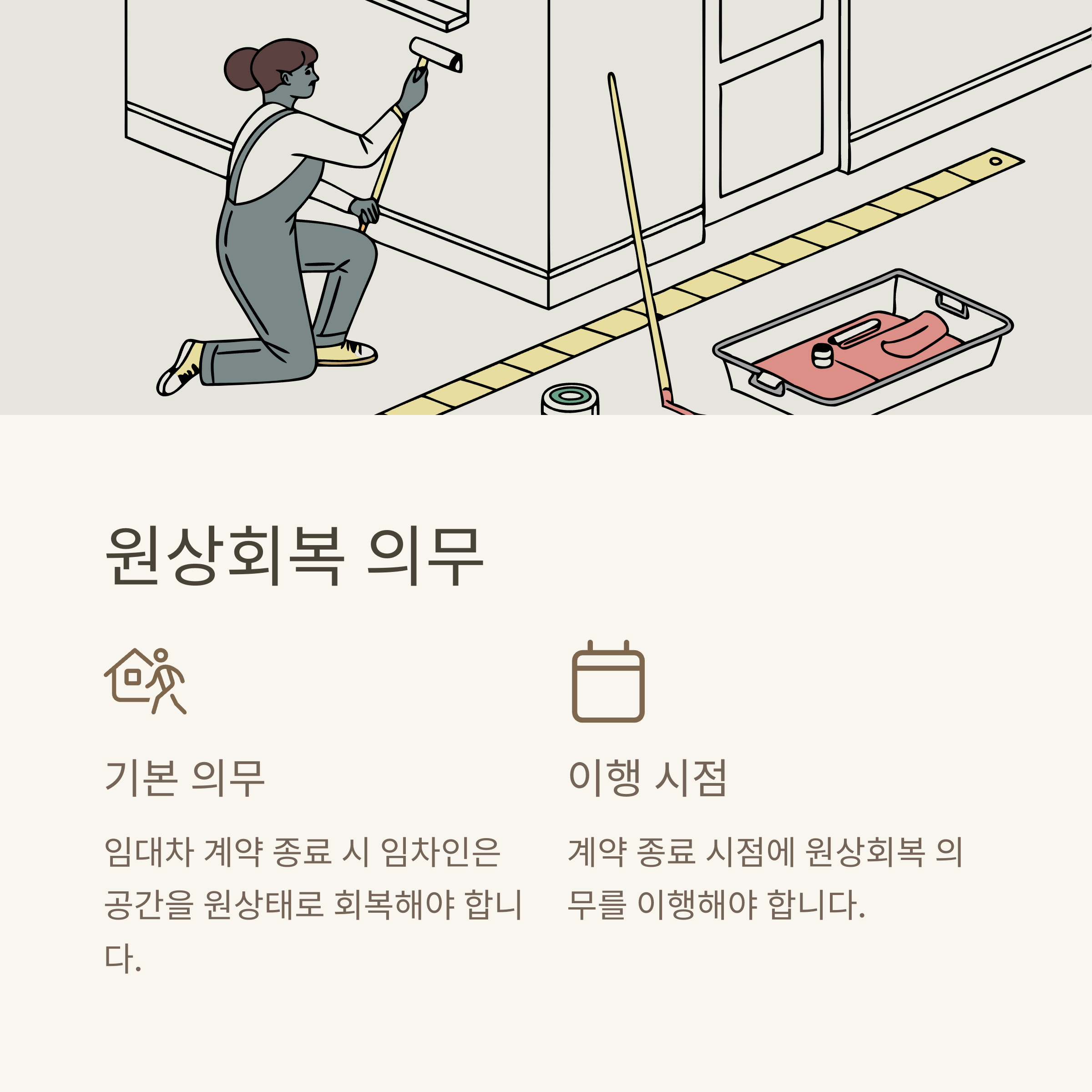 임대차 계약이 종료되면 임차인은 해당 공간을 원상태로 회복하여 반환해야 합니다. 이는 임대차 계약의 기본적인 의무 중 하나로, 임차인은 계약 종료 시점에 이를 이행해야 합니다.