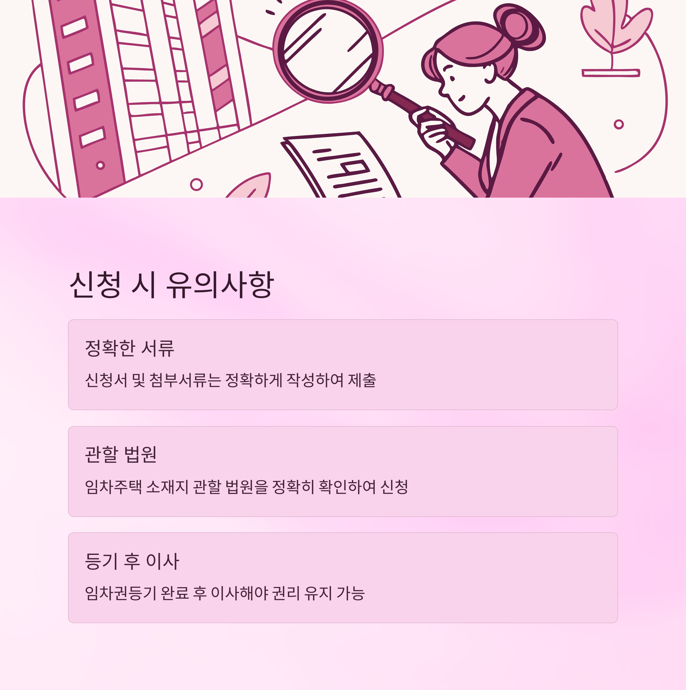 - 관할 법원 확인: 임차주택의 소재지를 관할하는 법원을 정확히 확인하여 신청해야 합니다.