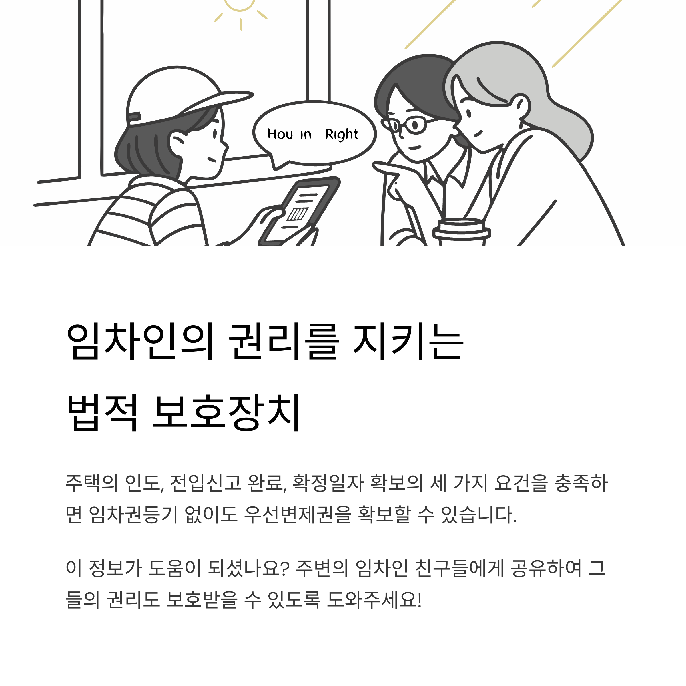 이 세 가지 요건을 모두 충족하면, 임차권등기 없이도 우선변제권을 인정받을 수 있습니다.