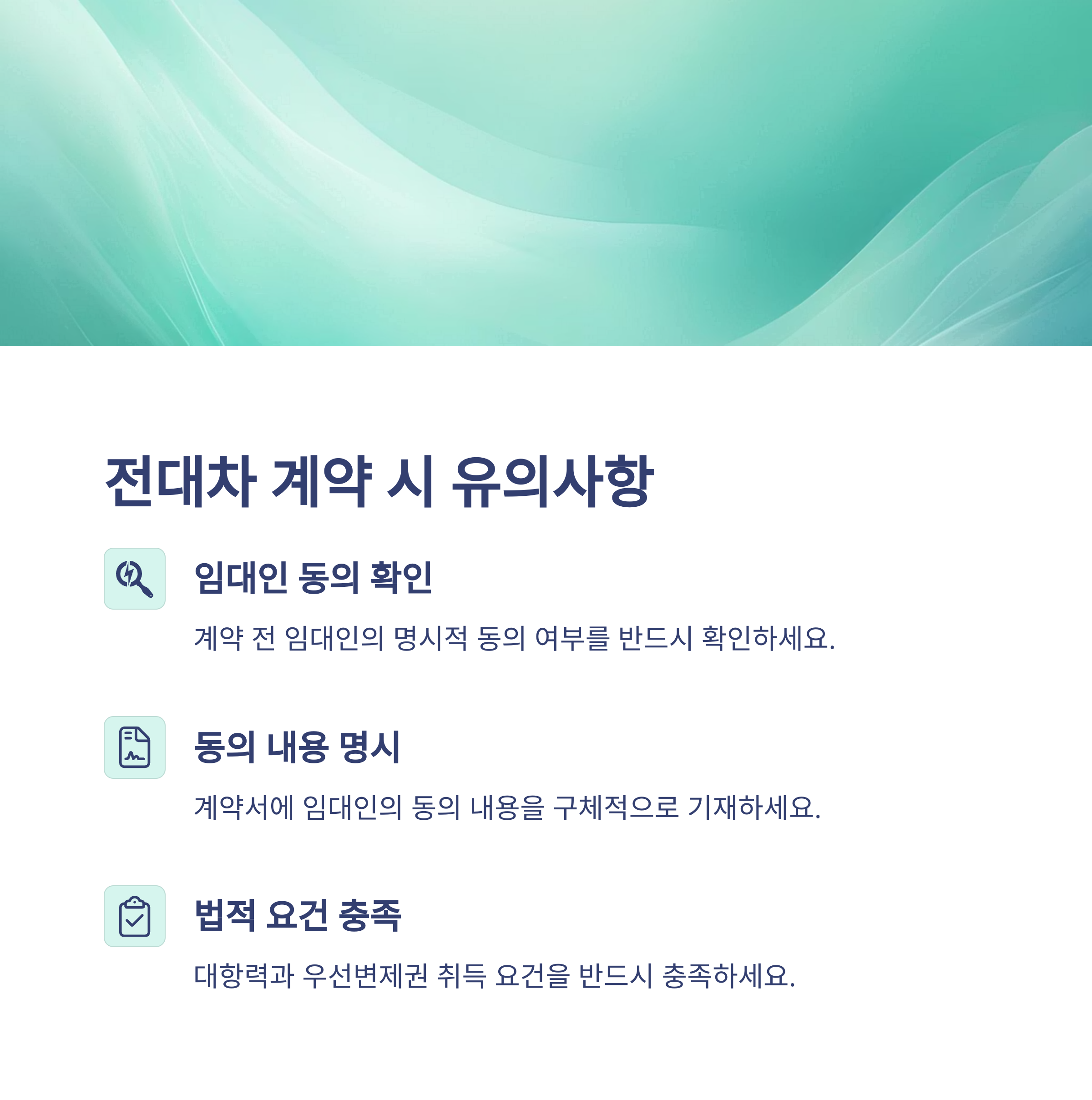 전대차 계약을 체결할 때에는 다음 사항을 유의해야 합니다: