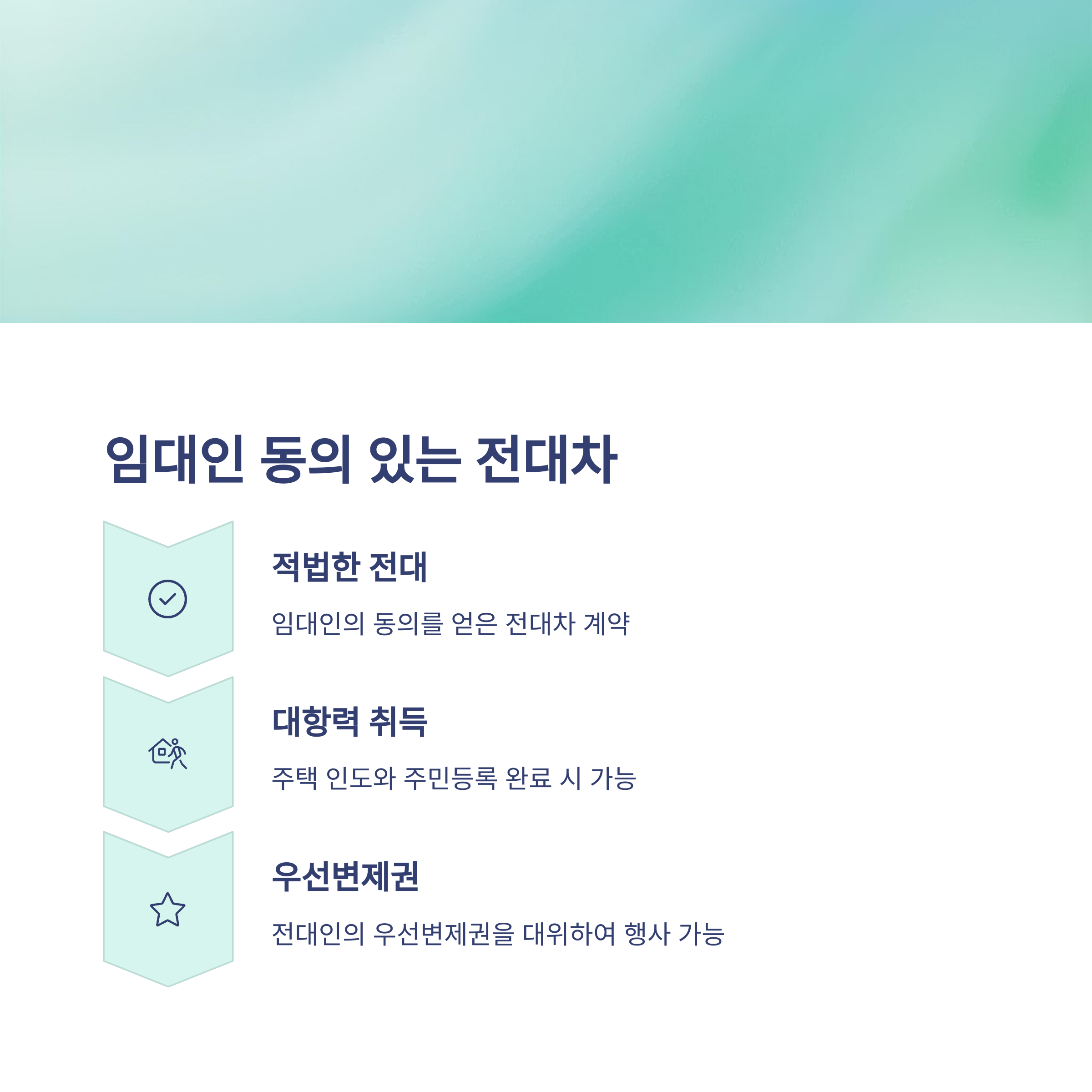 임대인의 동의를 얻어 적법하게 전대한 경우, 전차인은 일정한 요건을 충족하면 대항력과 우선변제권을 주장할 수 있습니다. 이때 전차인이 주택을 인도받고 주민등록을 마치면 대항력을 취득하게 되며, 전대인이 갖는 우선변제권을 대위하여 행사할 수 있습니다.
